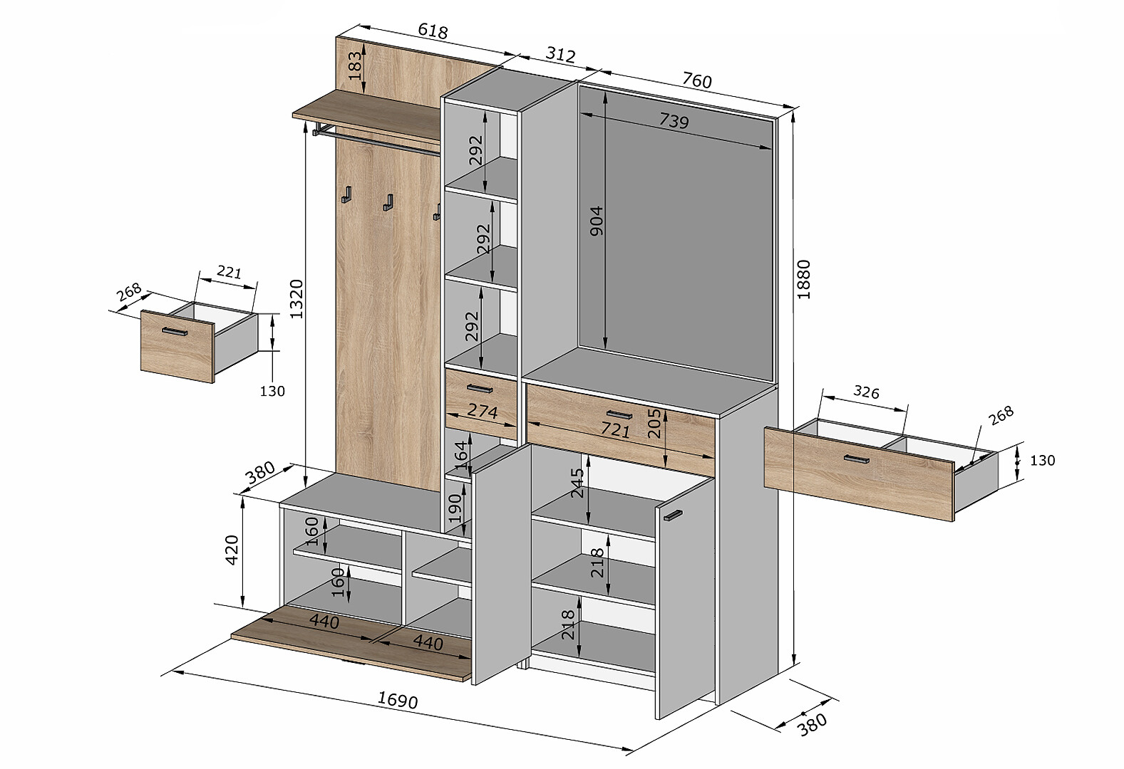 - Прихожая Moreli KO-0002 Корнелия дуб сонома