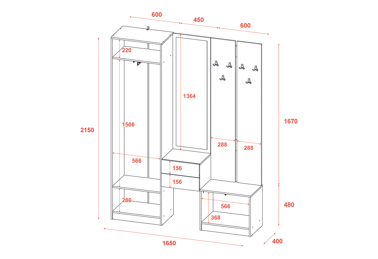 - Прихожая Сола Doros 165 см, дуб сонома / белый
