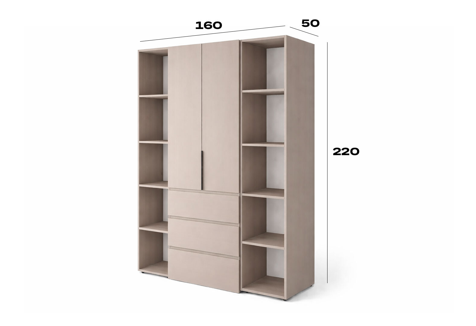 Шкаф Art In Head Light / Лайт 2-дверный с 3 ящиками и стеллажами 160 см, кашемир