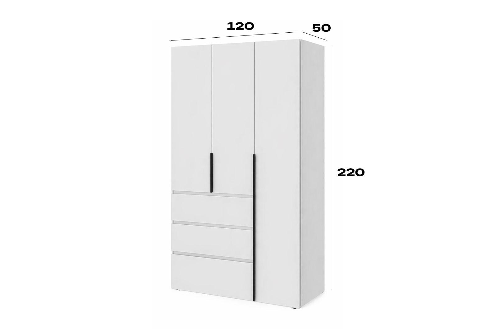 Шкаф Art In Head Light / Лайт 3-дверный с 3 ящиками 120 см, белый бриллиант