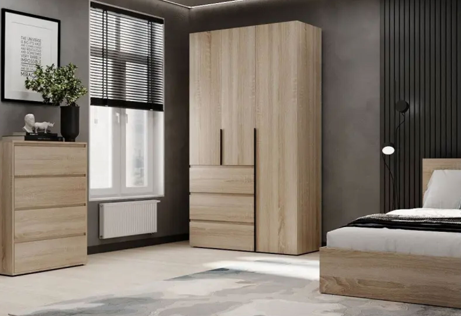 Шкаф Art In Head Light / Лайт 3-дверный с 3 ящиками 120 см, дуб сонома