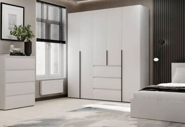- Тип шкафа: 5D. Пять дверей обеспечивают легкий доступ ко всем полкам и ящикам, что делает организацию вещей более удобной.
