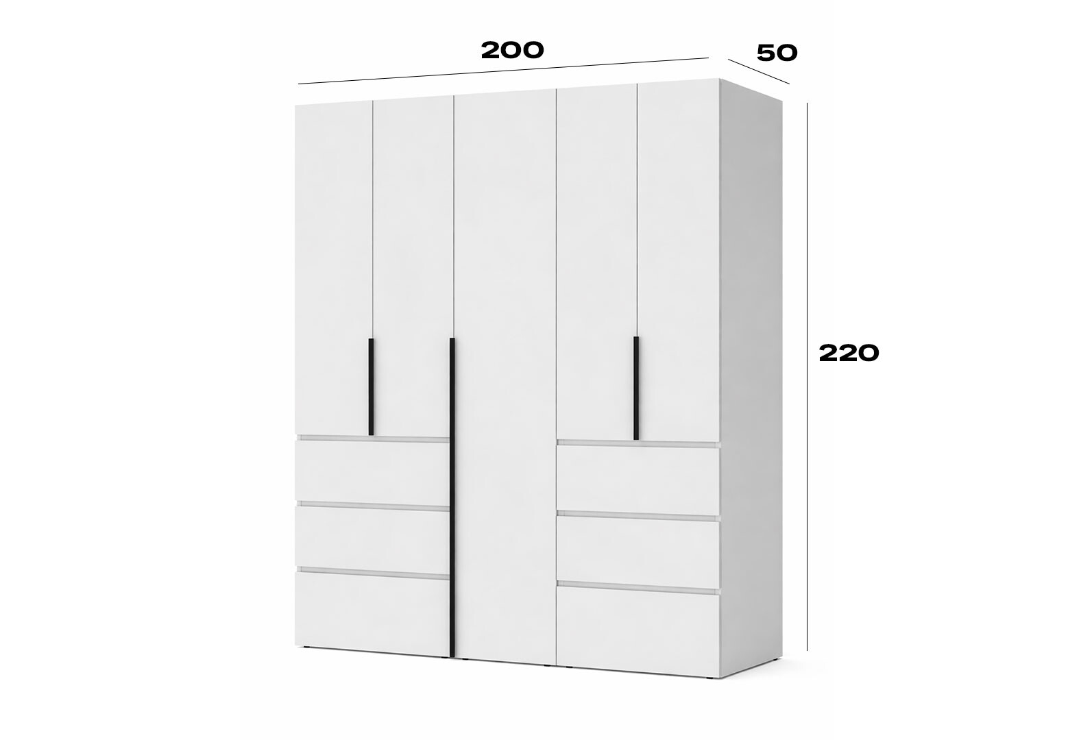 Шкаф Art In Head Light / Лайт 5-дверный с 6 ящиками 200 см, белый бриллиант