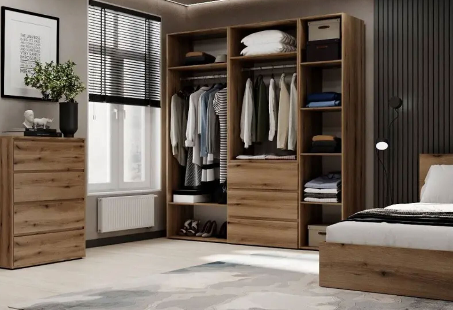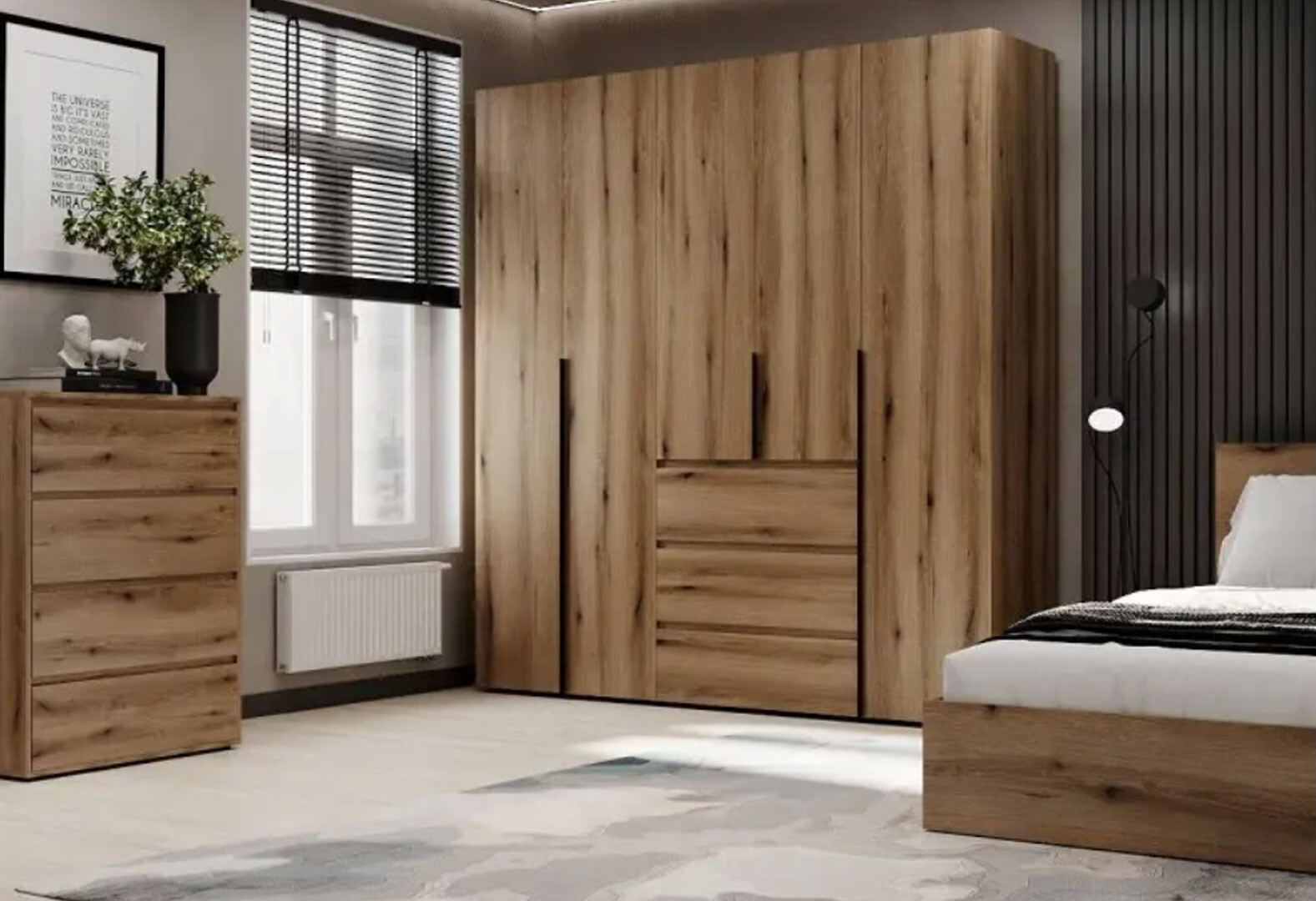 - Шкаф Art In Head Light / Лайт 5-дверный с 6 ящиками 200 см, дуб эвок