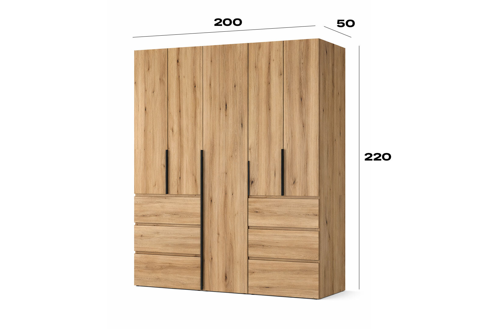 Шкаф Art In Head Light / Лайт 5-дверный с 6 ящиками 200 см, дуб эвок