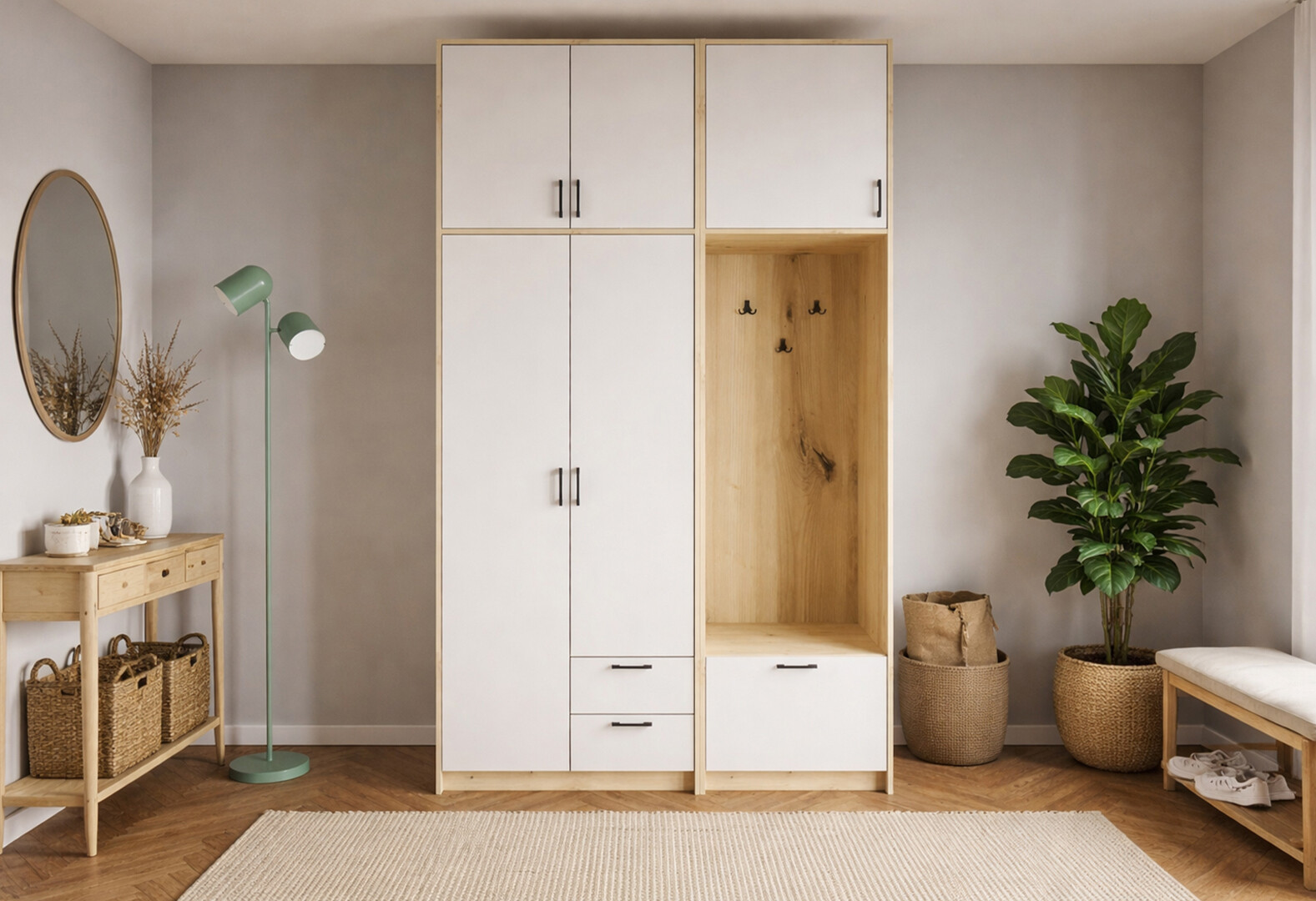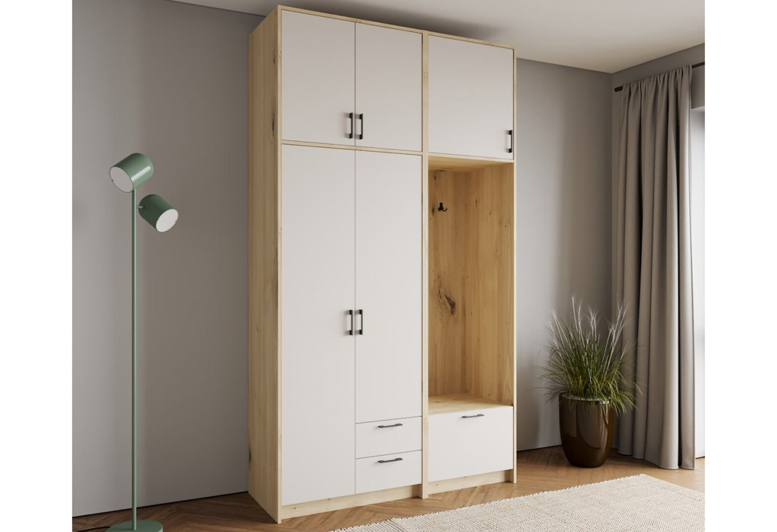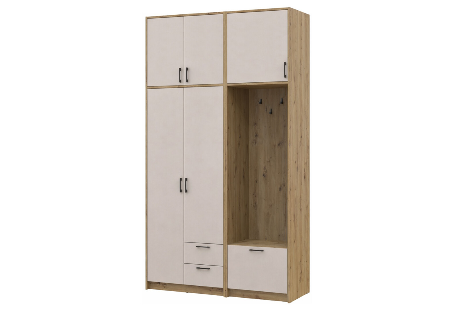 - Шкаф для одежды 2 ДСП Doros Ронди с вешалкой и высокой антресолью 142 см Дуб Артизан / Кашемир