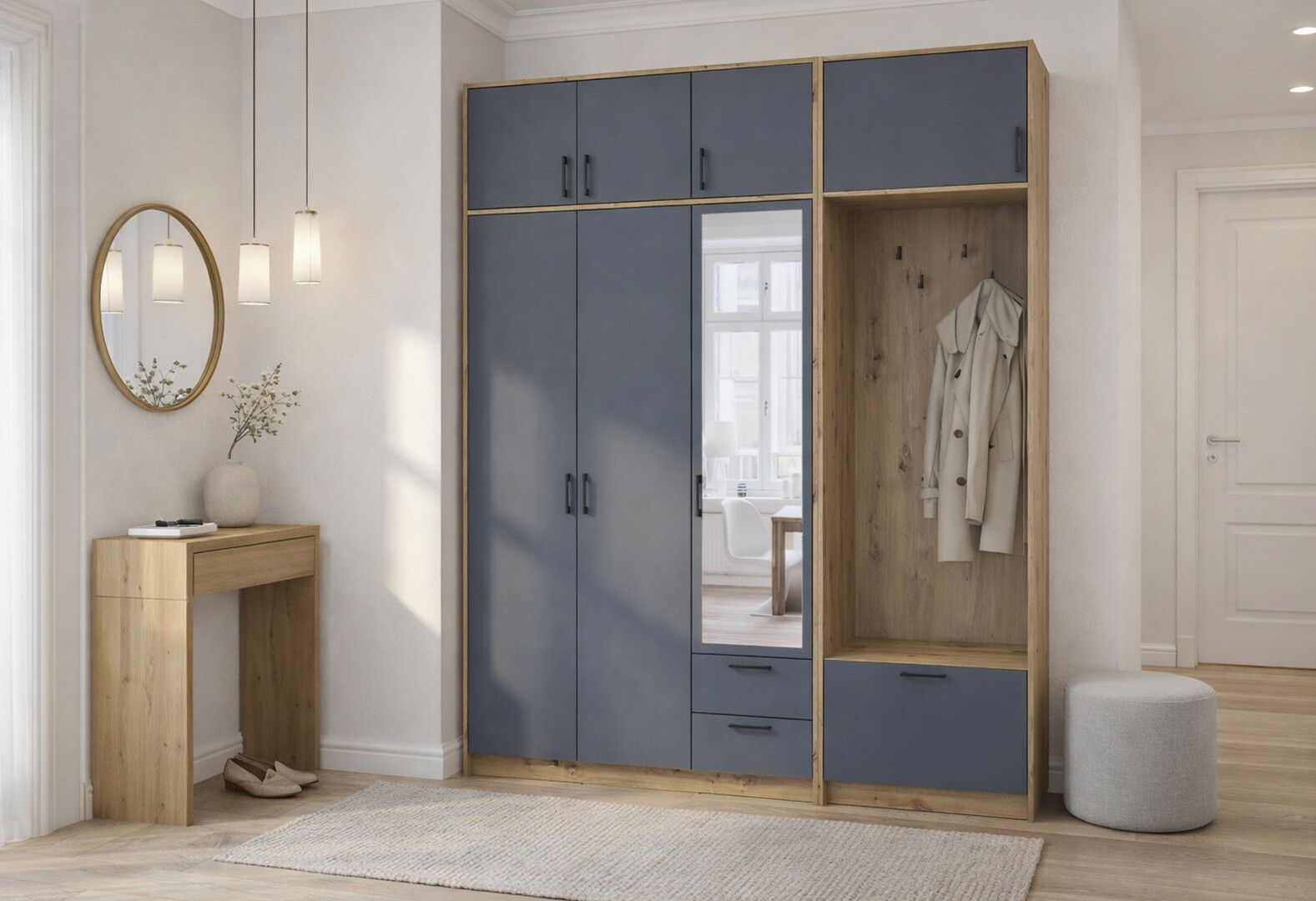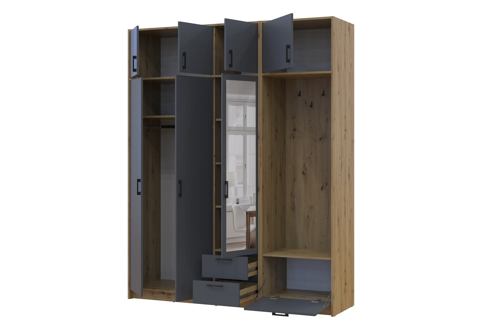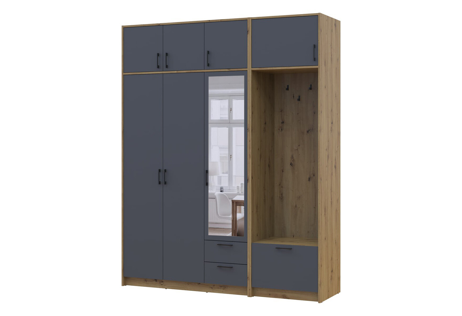- Шкаф для одежды 3 ДСП Doros Ронди с вешалкой, зеркалом и антресолью 181 см Дуб Артизан / Графит
