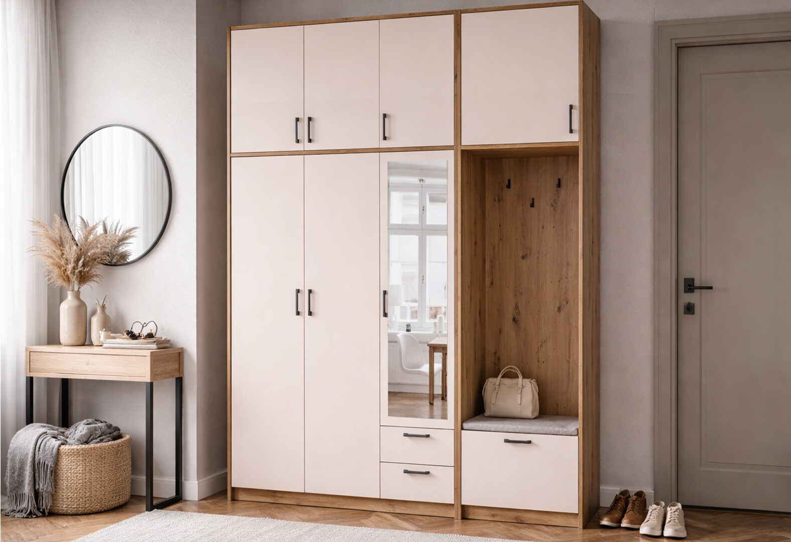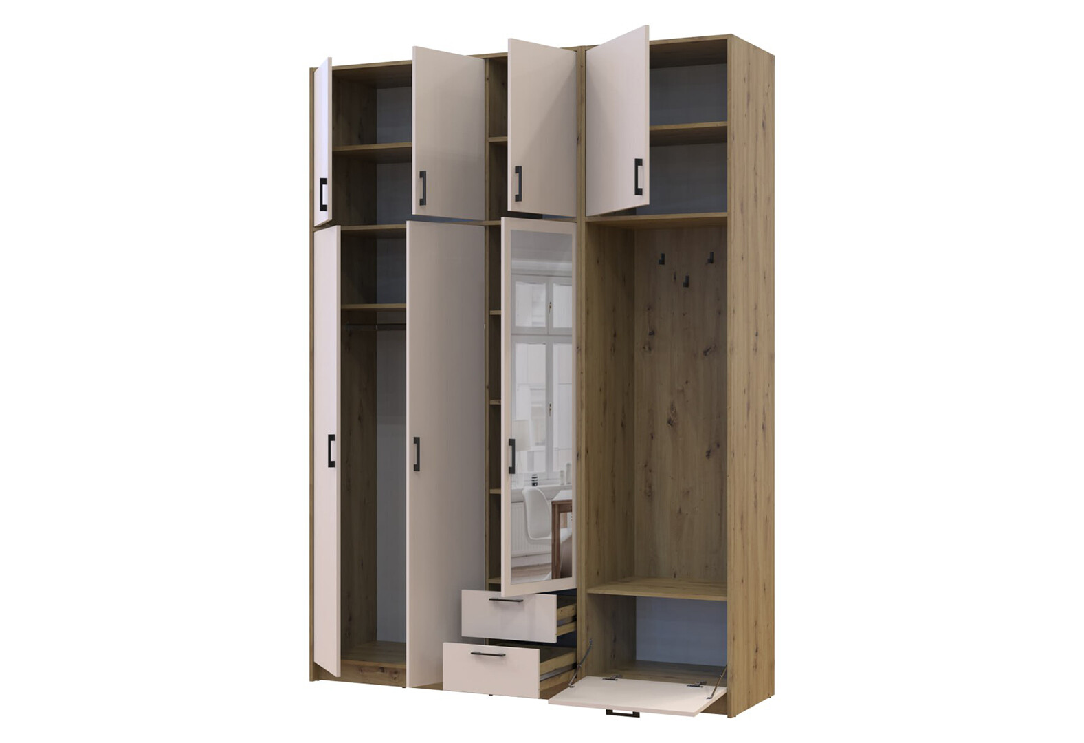 - Шкаф для одежды 3 ДСП Doros Ронди с вешалкой, зеркалом и высокой антресолью 181 см Дуб Артизан / Кашемир