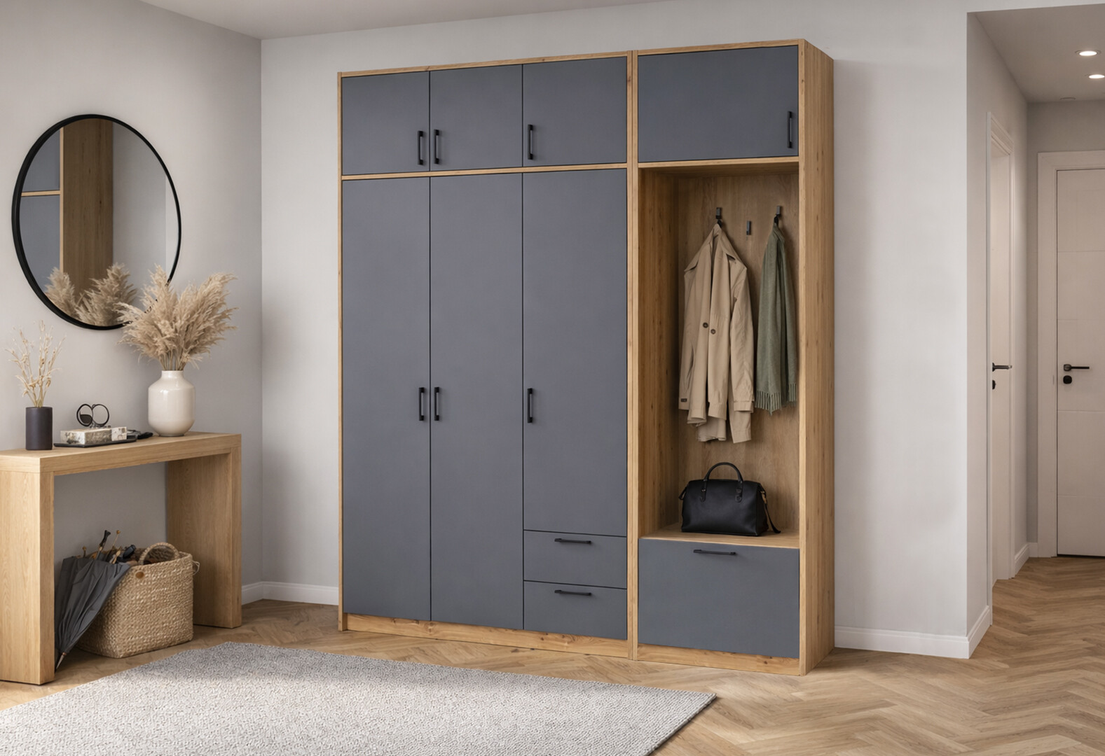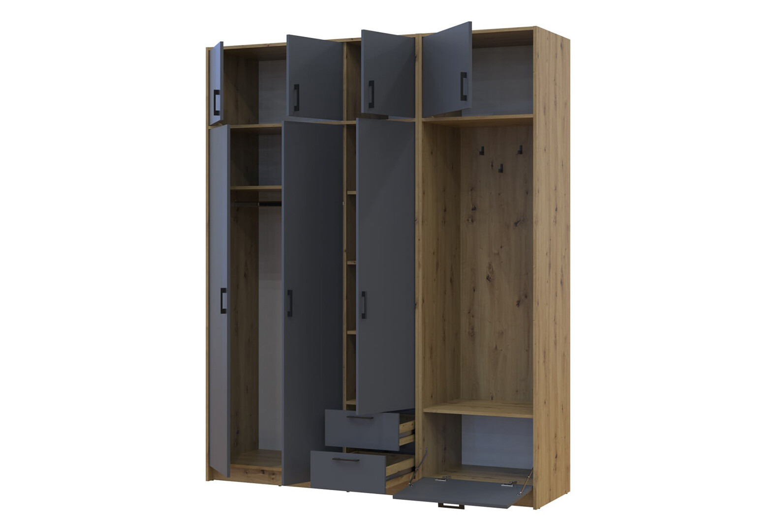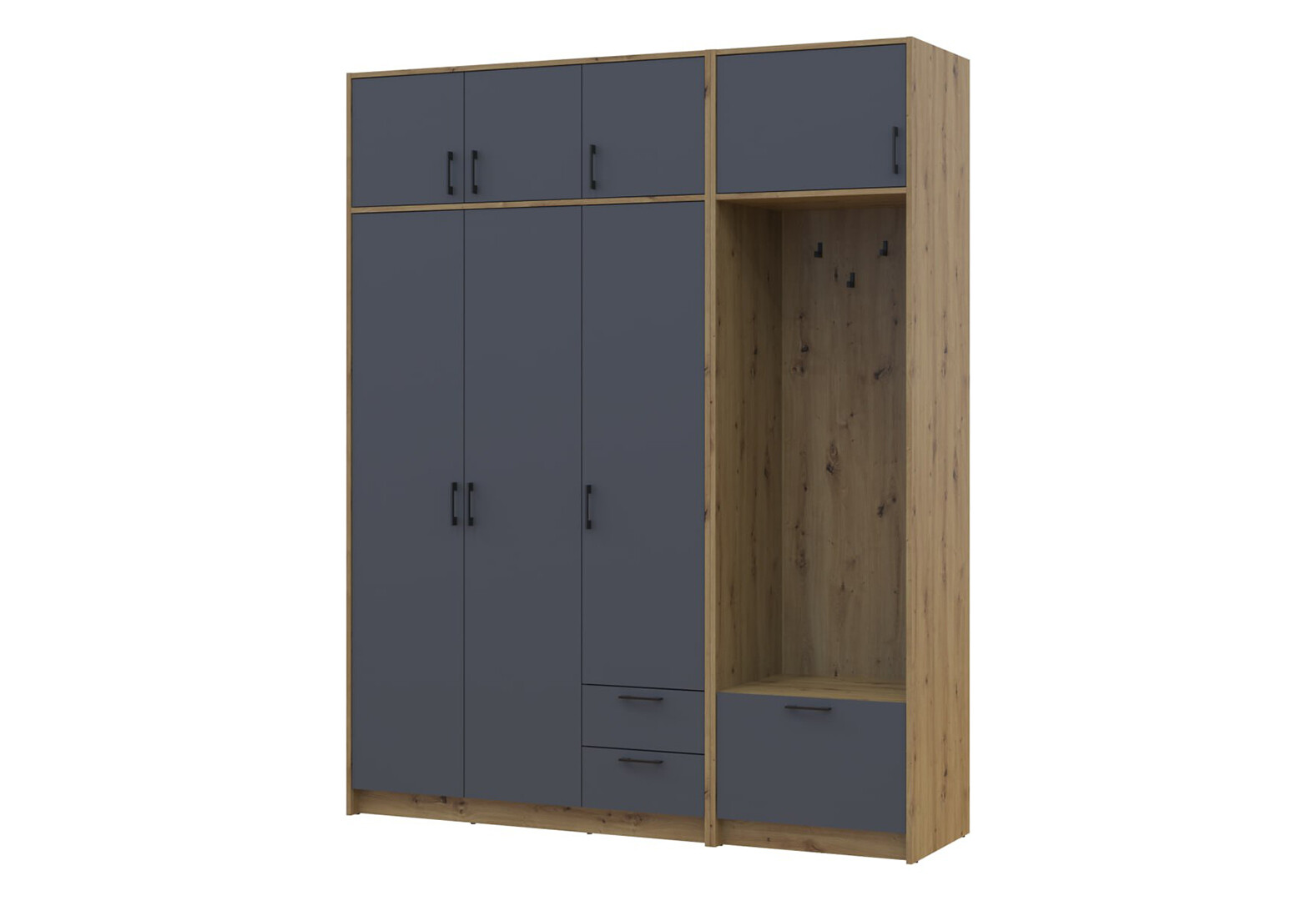- Шкаф для одежды 3 ДСП Doros Ронди с вешалкой и антресолью 181 см Дуб Артизан / Графит