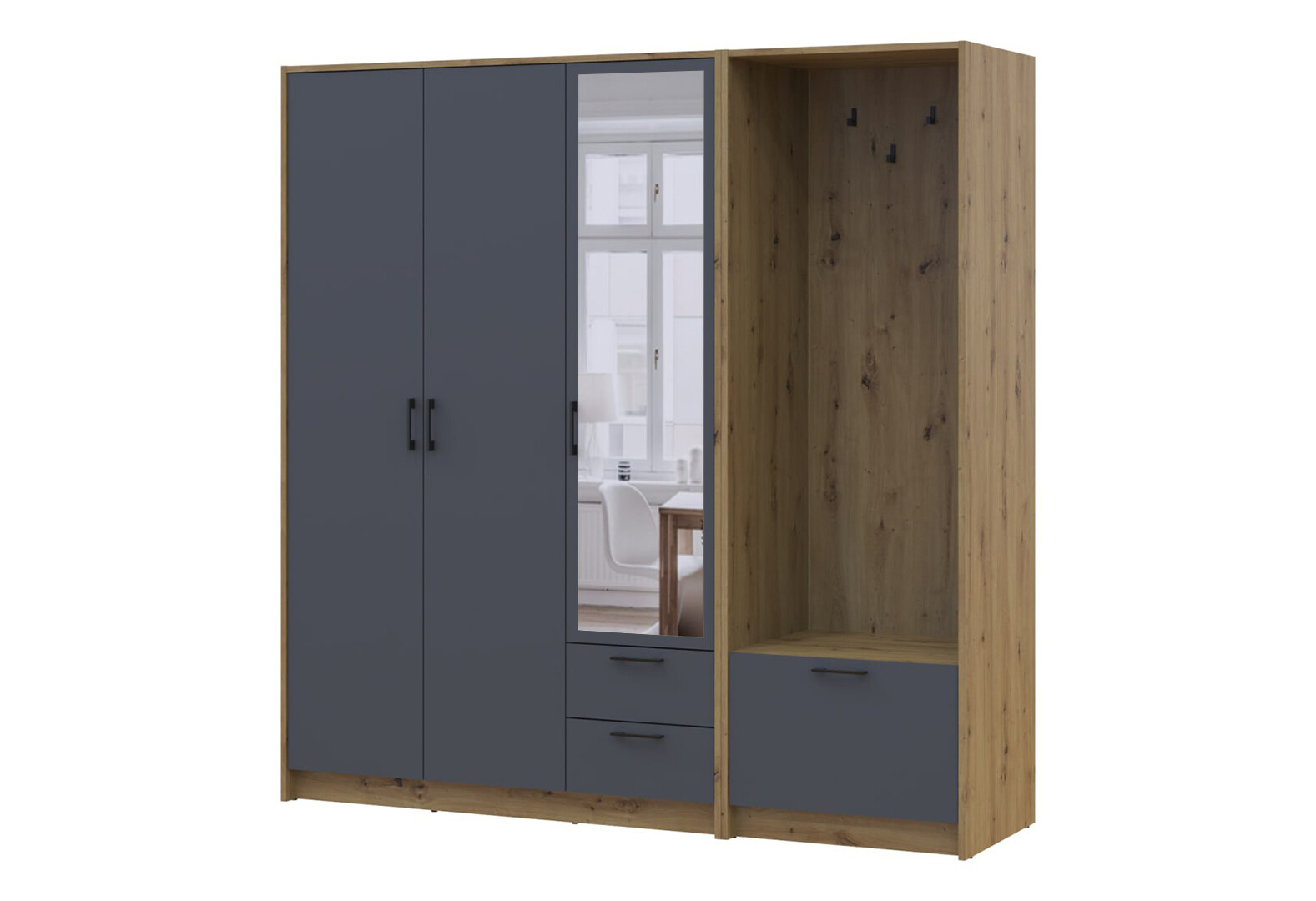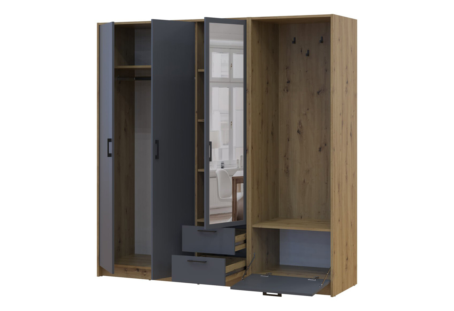 - Шкаф для одежды 3 ДСП Doros Ронди с вешалкой и зеркалом 181 см Дуб Артизан / Графит