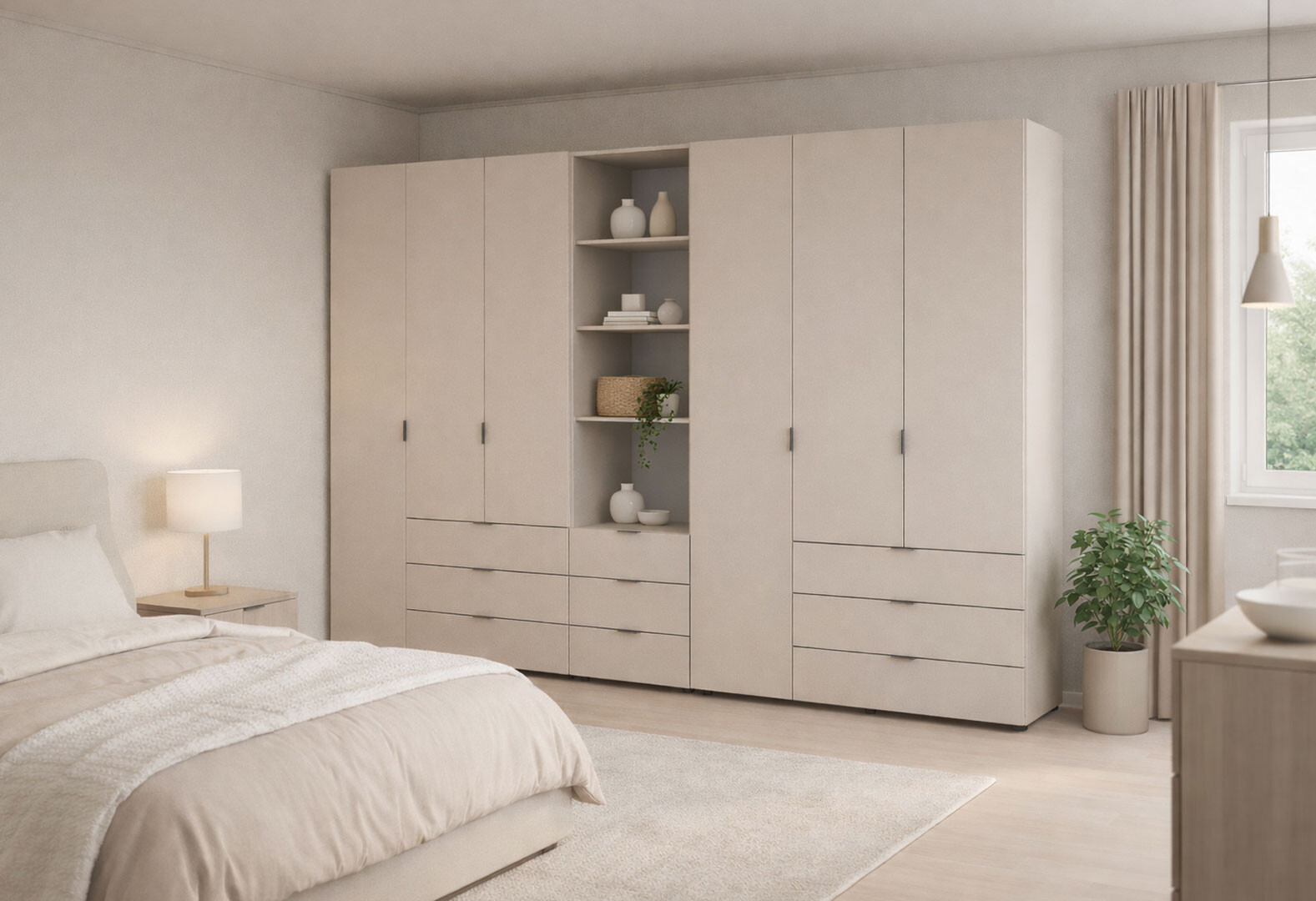 Шкаф Doros Гелар 3+3 ДСП 6-дверная с ящиками и пеналом с открытыми полками 292.4 см Кашемир