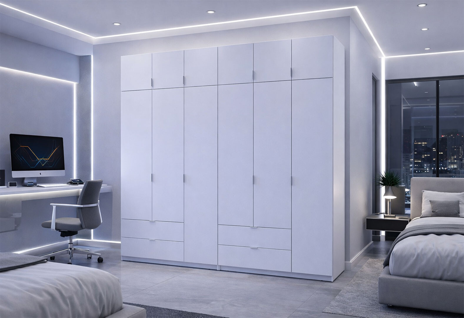 - Шкаф Doros Лукас 6-дверный с антресолью 240 см, белый