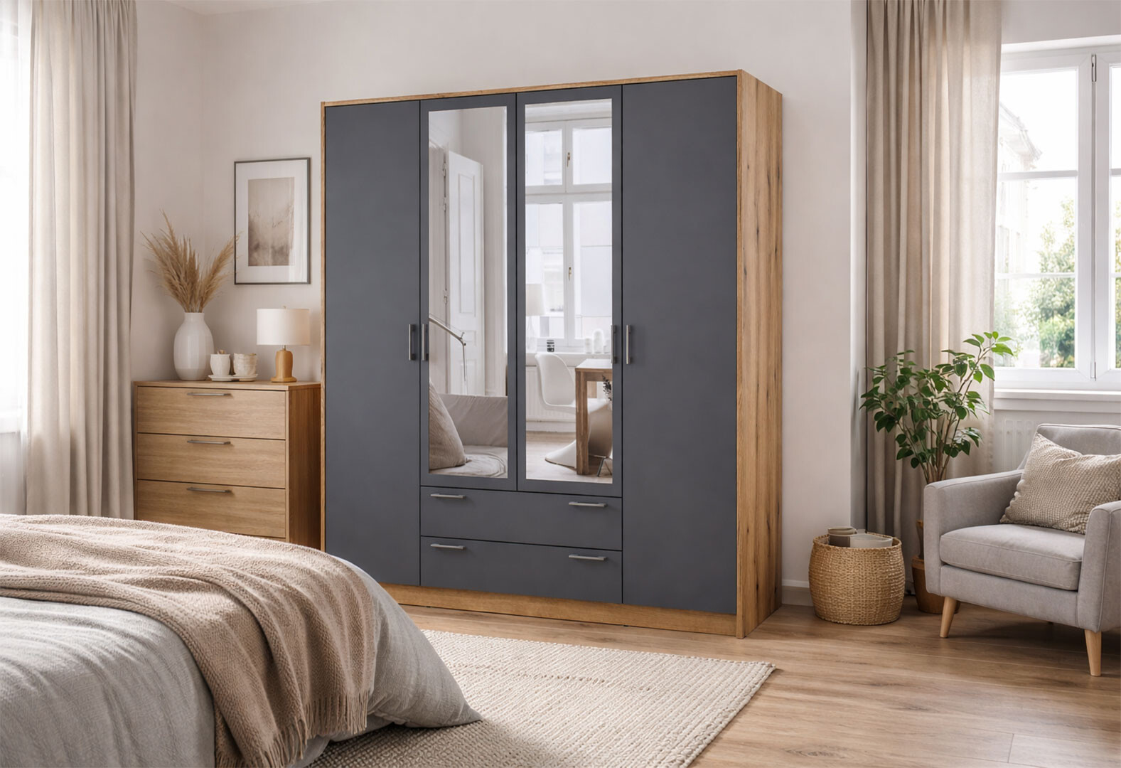 Шкаф Doros Ронди 4-дверная с зеркалом и 2 ящиками 160 см Дуб Артизан / Графит