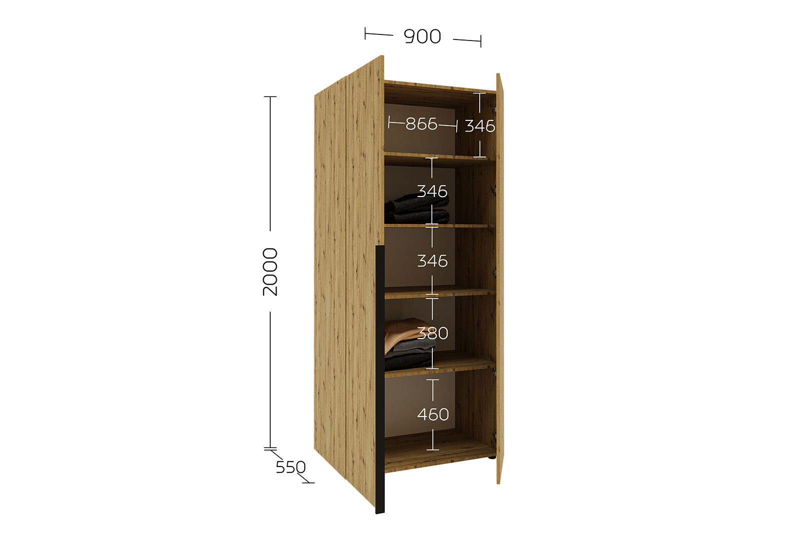 - Шкаф Garant Соло 2D_Sh с полками 90 см, дуб артизан