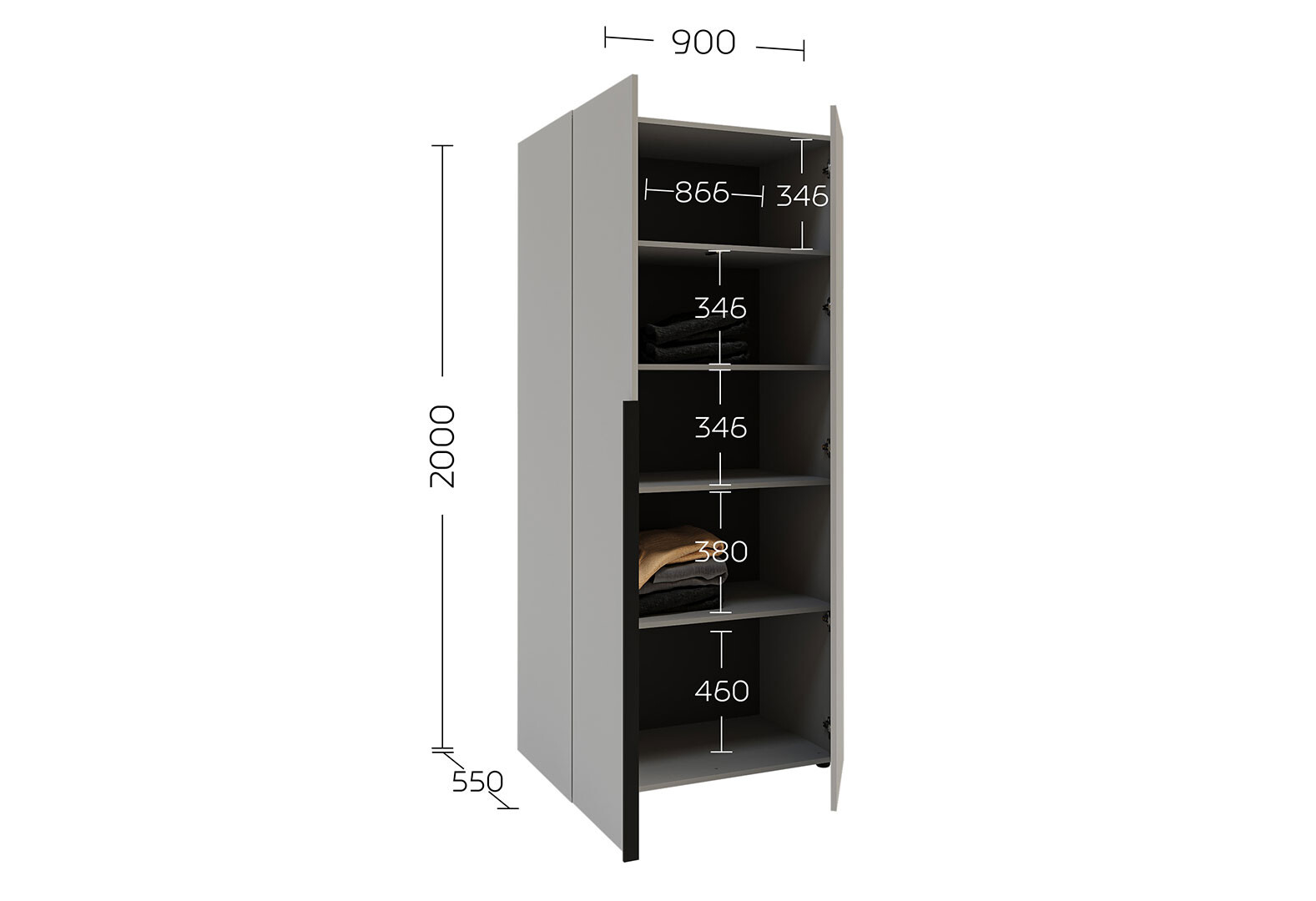 - Шкаф Garant Соло 2D_Sh с полками 90 см, серая мышка