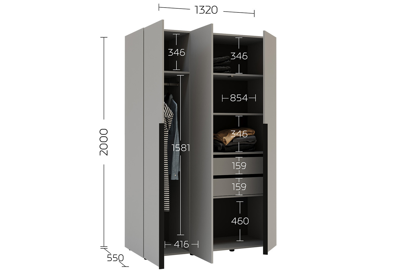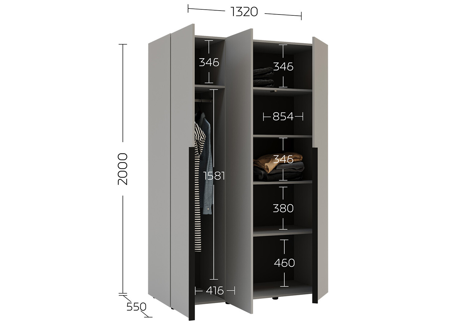 - Шкаф Garant Соло 3D с полками и штангой 132 см, серая мышка