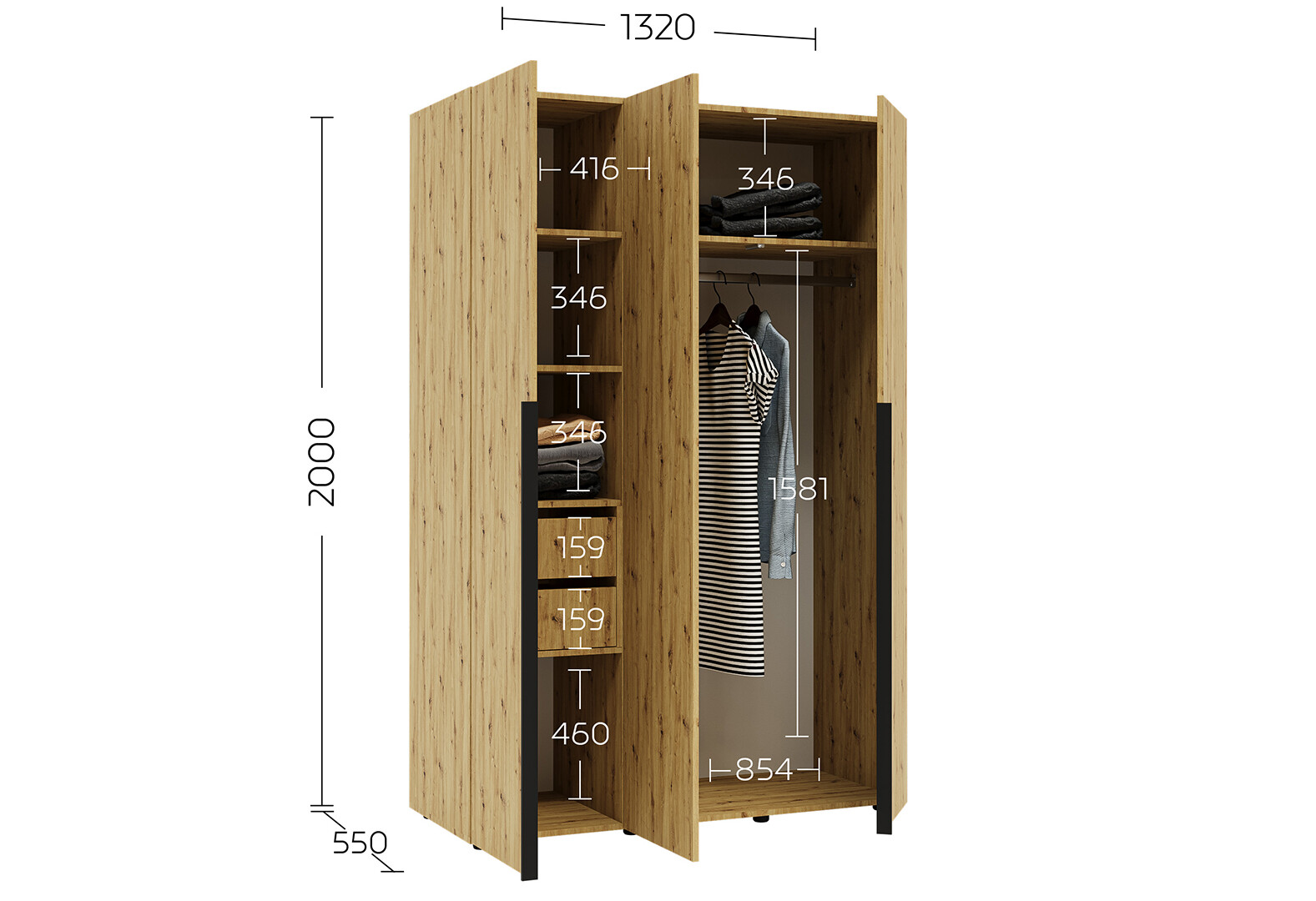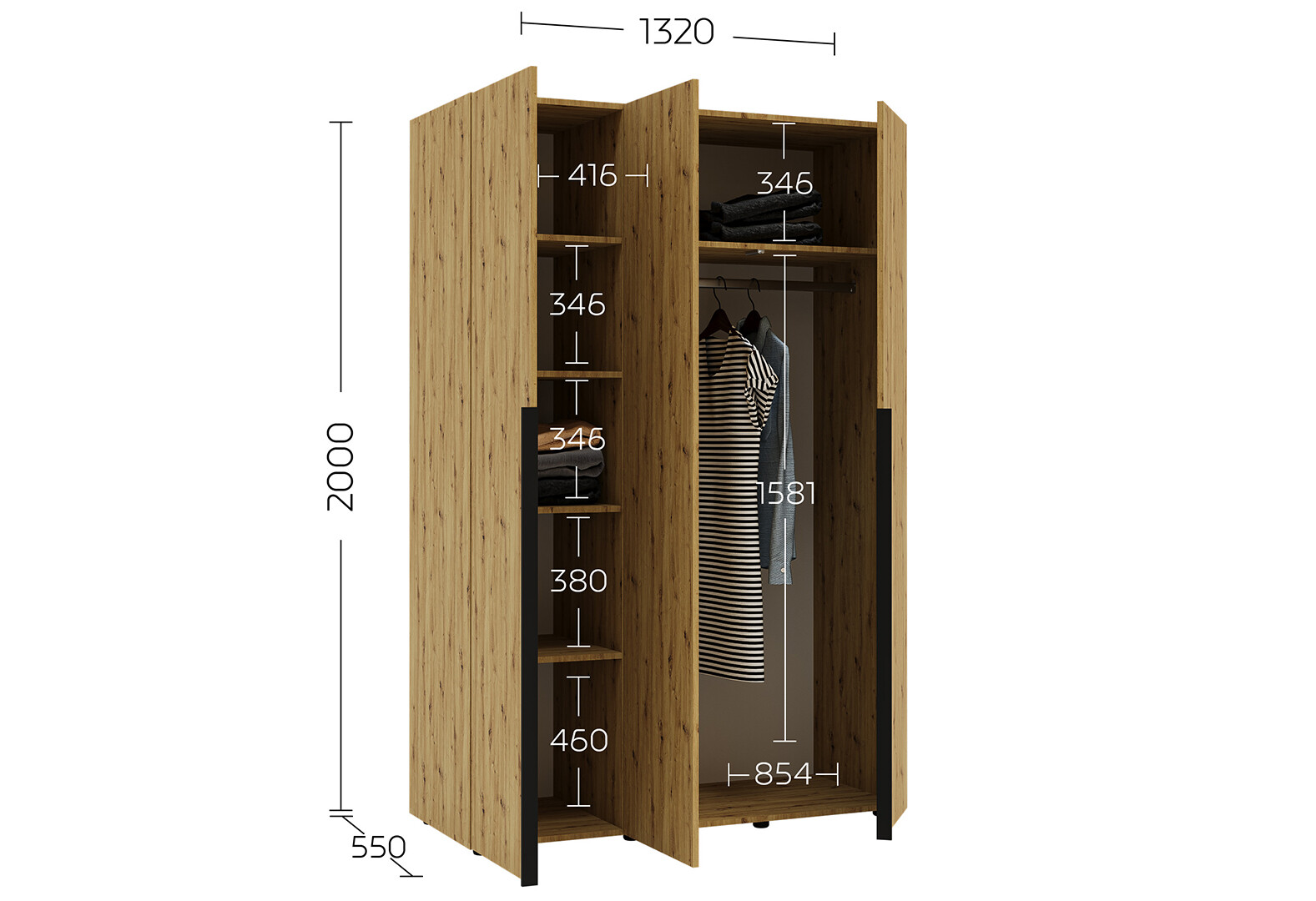 Шкаф Garant Соло 3D со штангой и полками 132 см, дуб артизан