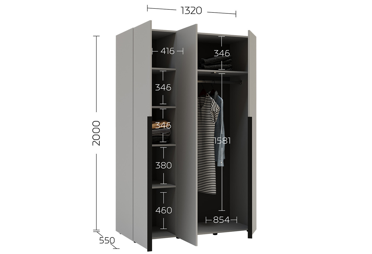 Шкаф Garant Соло 3D со штангой и полками 132 см, серая мышка