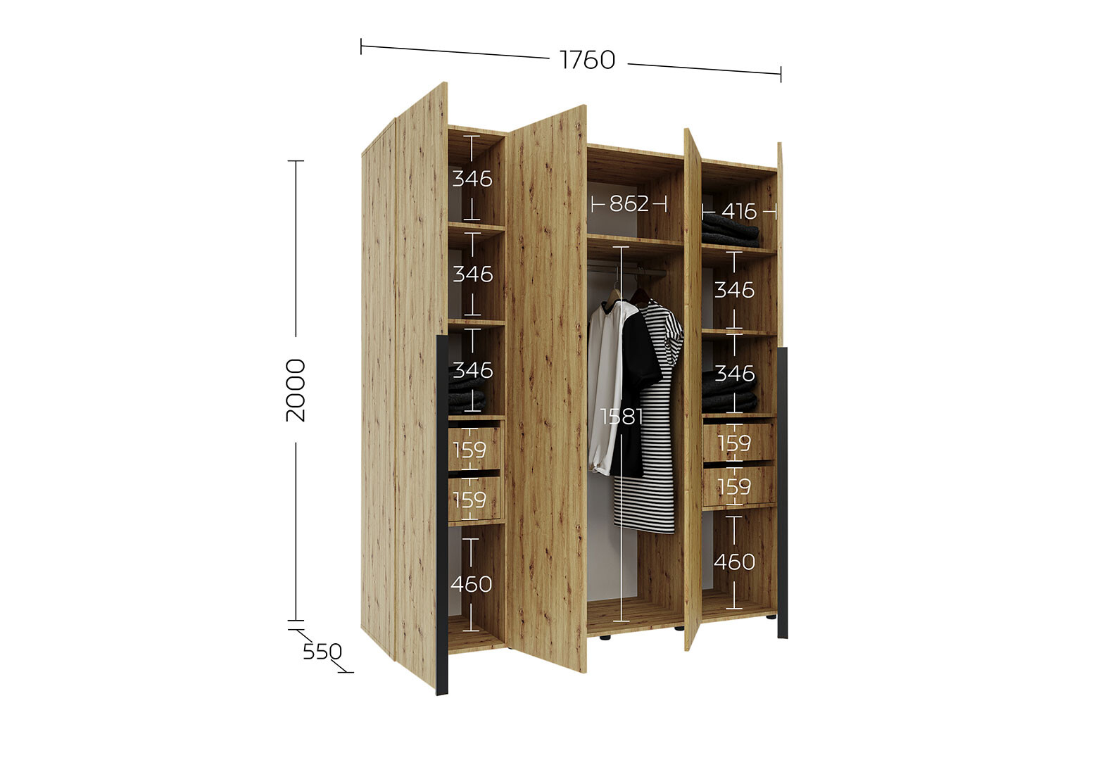 - Шкаф Garant Соло 4D со штангой и полками побокам 176 см, дуб артизан