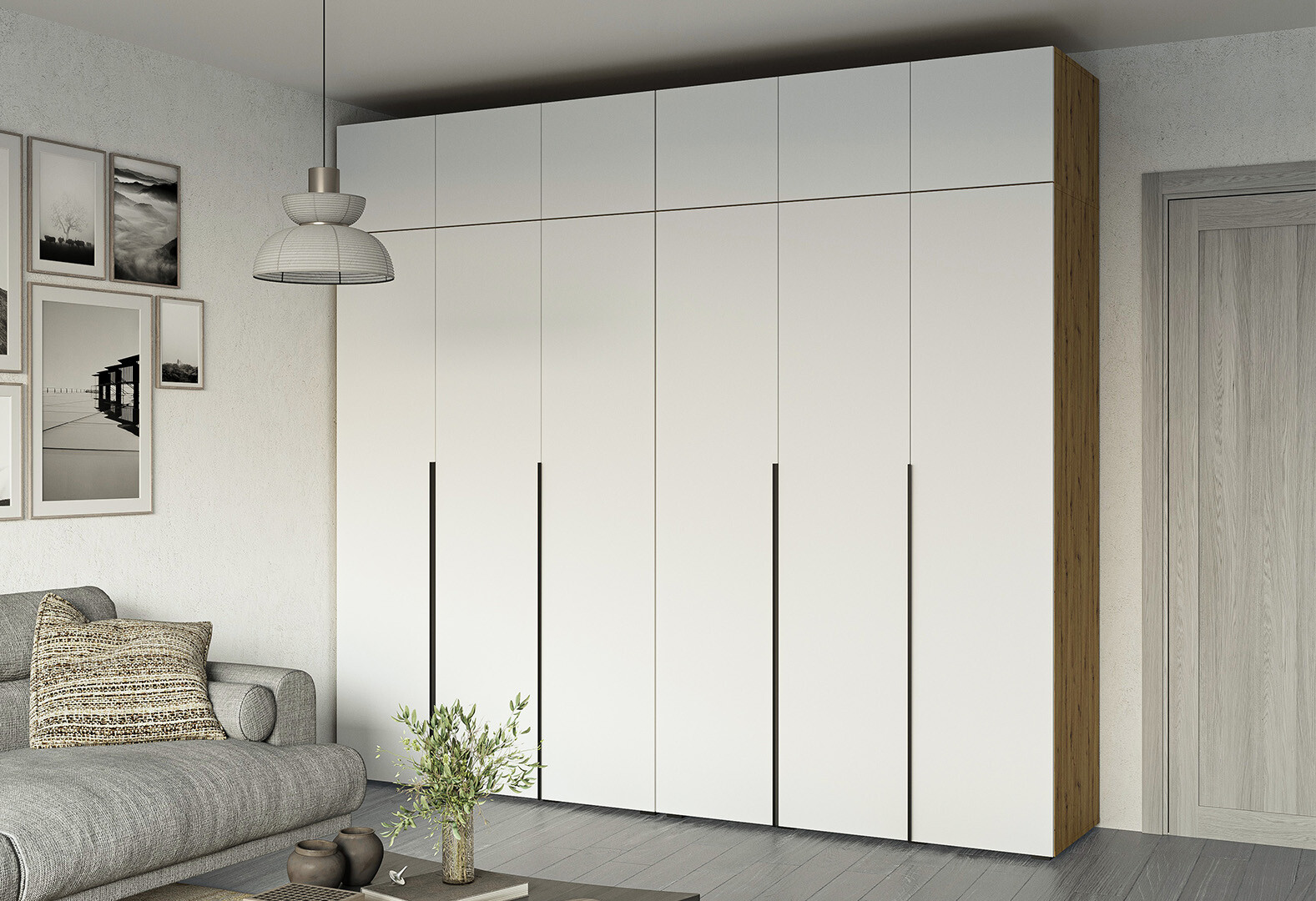Шкаф Garant Соло 6D с антресолями, штангой и полками 264 см, дуб артизан / нимфея альба