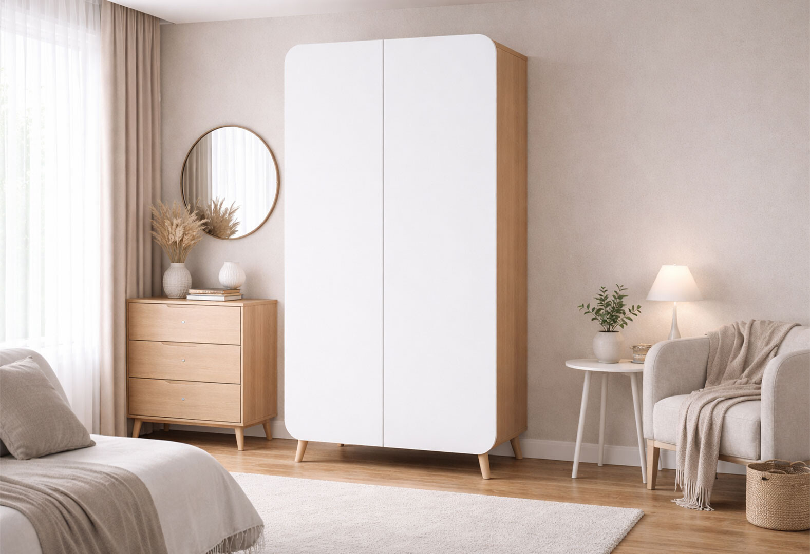 - Шкаф Киевский стандарт Руна 2-дверный 90 см дуб рая / белый софт