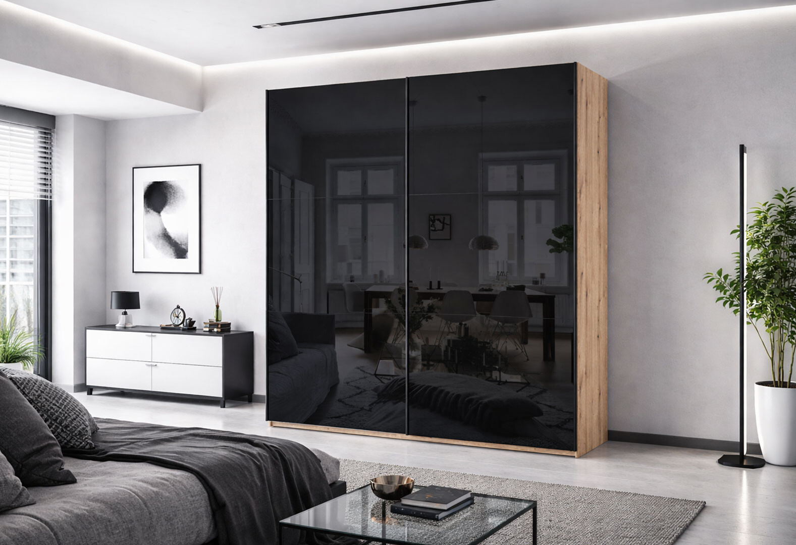 Шкаф-купе Doros G-Caiser / Джи-Кейзер 2-дверный 2 стекла 180 см, дуб эвок / чёрный