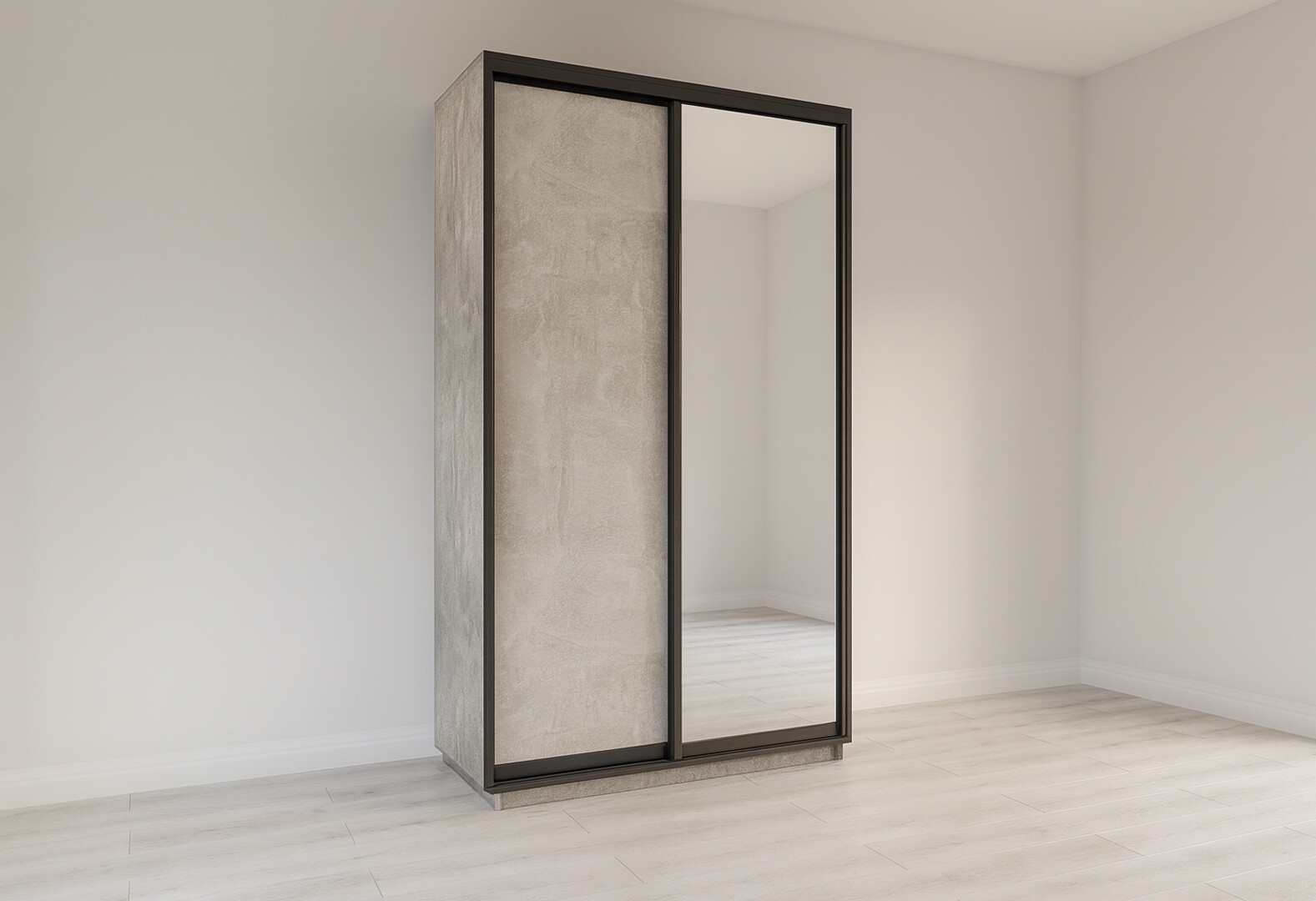 Шкаф-купе Garant 2-дверный с зеркалом 110 см Индастриал, профиль венге глянец