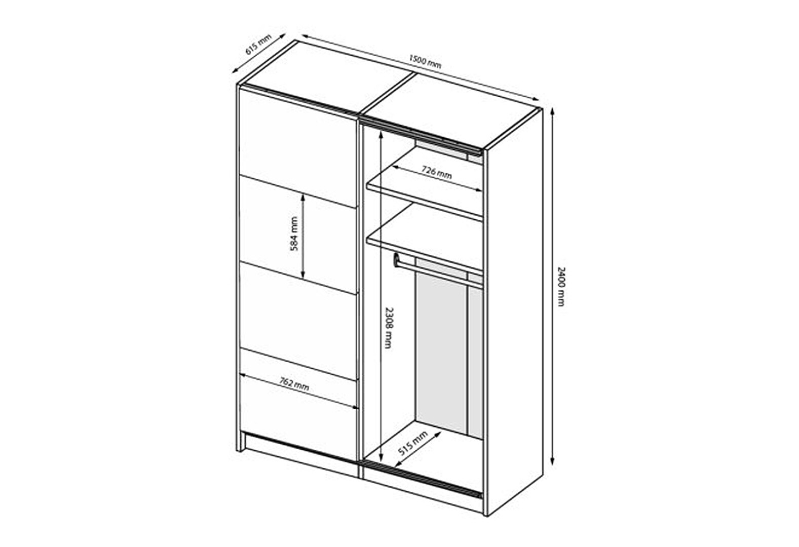 - Шкаф-купе МироМарк Лори / Lori 2-дверный с зеркалом 1,5х2,4м глянец кашемир