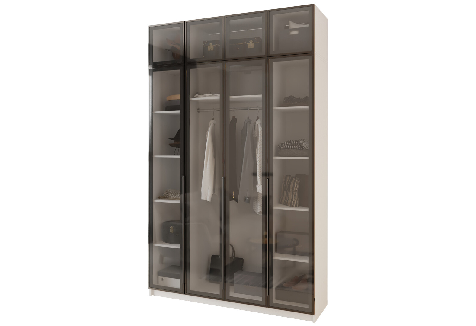 Шкаф Мебель Стар Оскар 4-дверный с антресолью и витринами 160 см Аляска белая