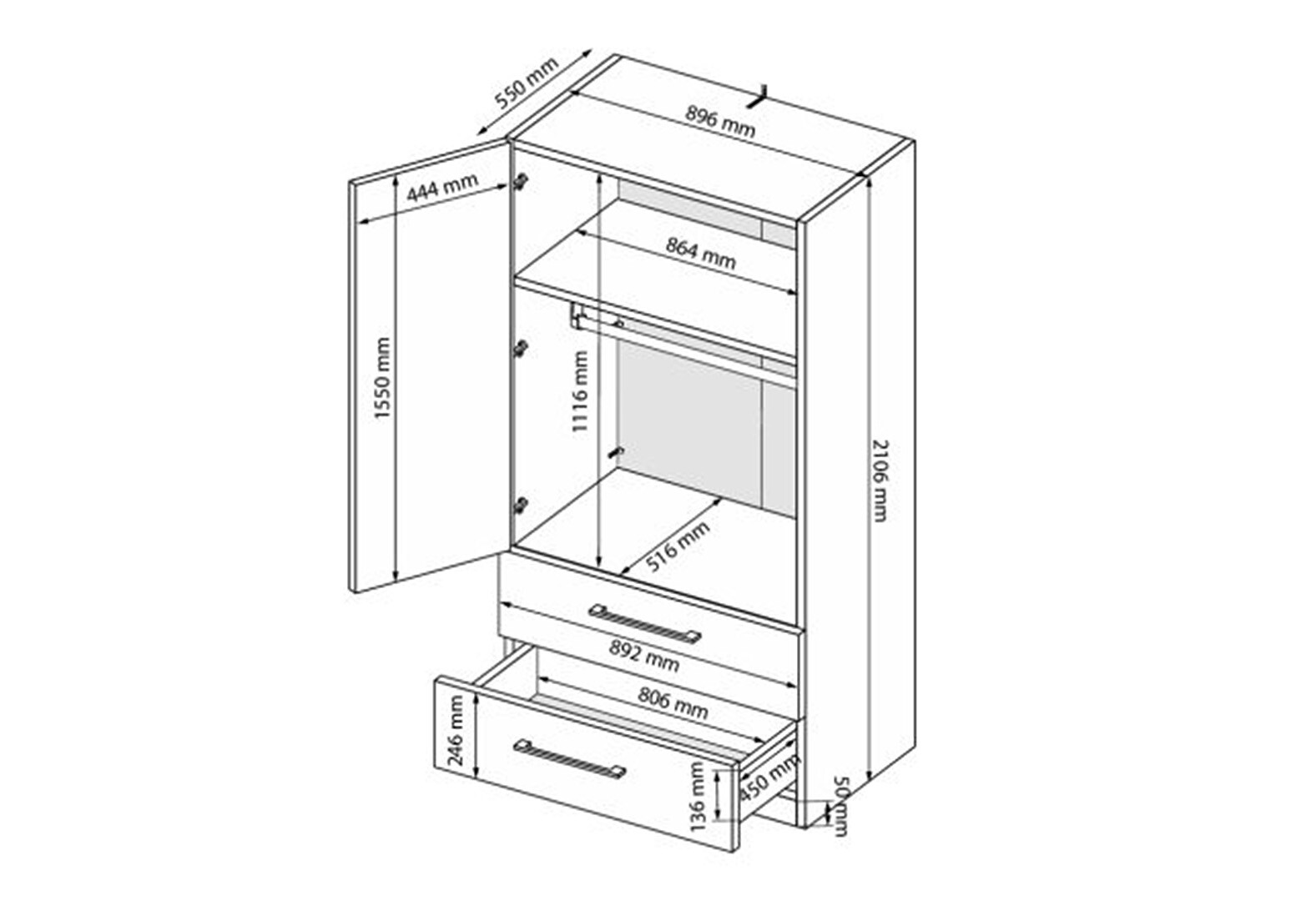 Шкаф МироМарк Лори / Lori 2-дверный с ящиками 89,6 см глянец кашемир