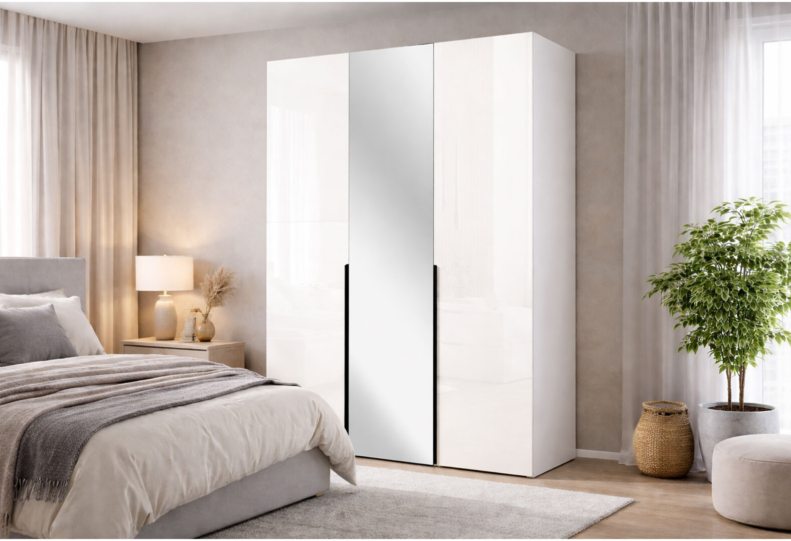 - Шкаф МироМарк Лори / Lori 3-дверный с зеркалом 134,4 см глянец кашемир
