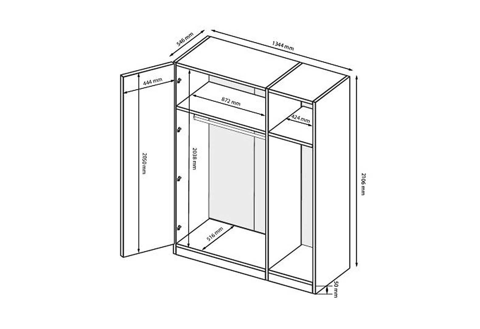 - Шкаф МироМарк Мила 3-дверный с зеркалом 134,4 см белый глянец