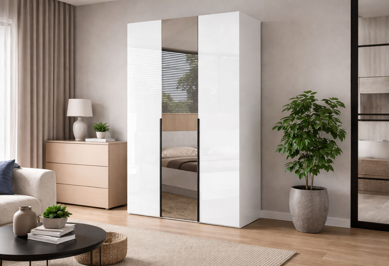 Шкаф МироМарк Мила 3-дверный с зеркалом 134,4 см белый глянец