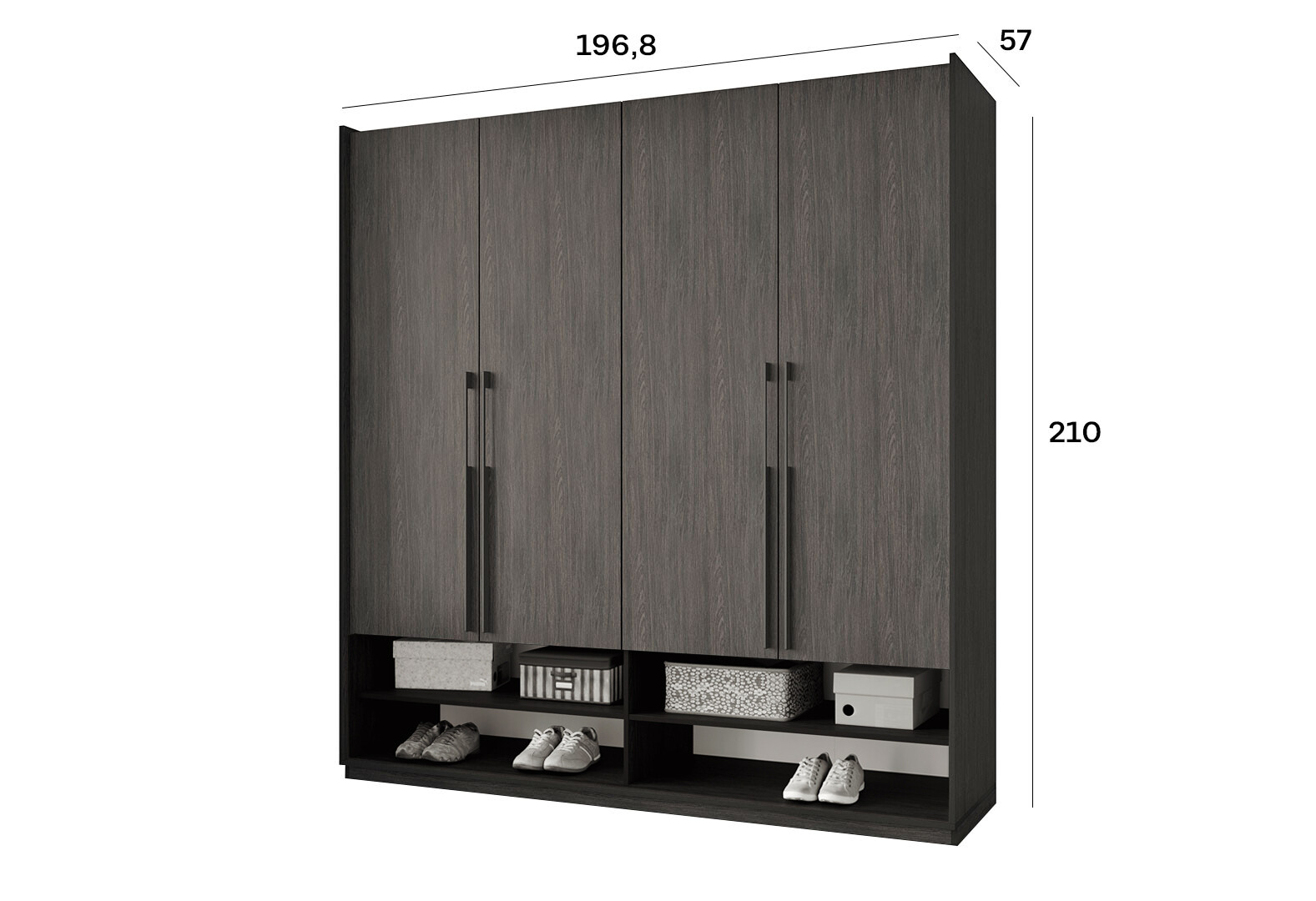 Шкаф Moreli Ramo / Рамо R-0009 4-дверный со штангой слева и полками 196,8 см, венге
