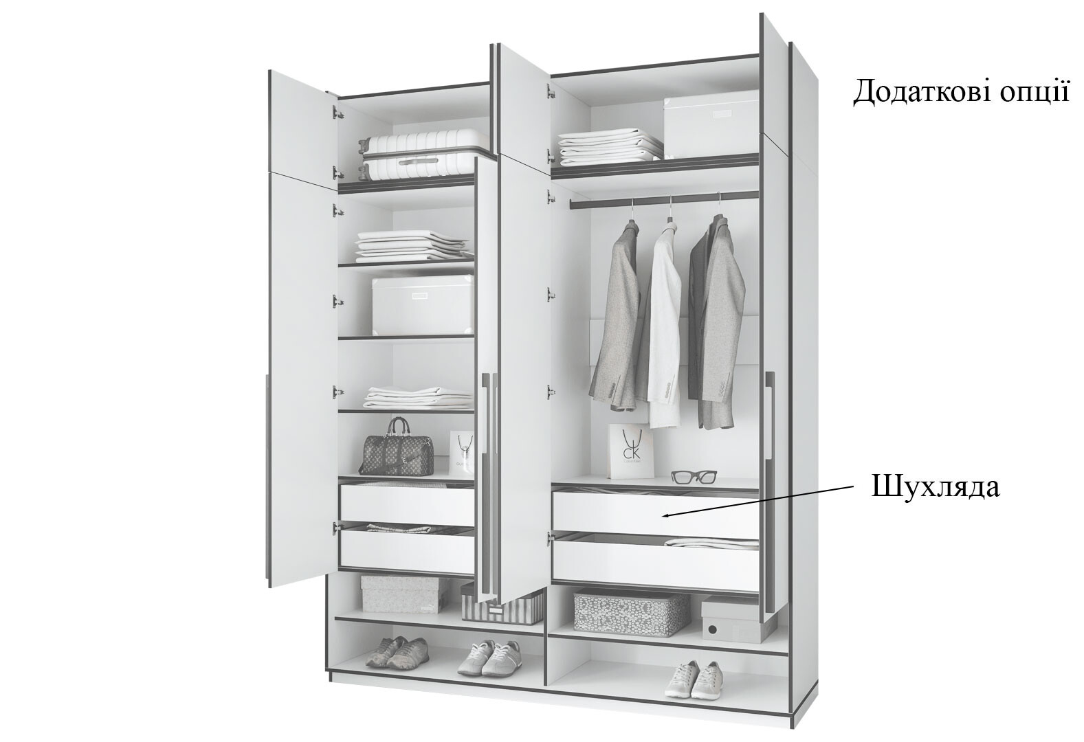 Изображение 3 - Шкаф Moreli Ramo / Рамо R-0010 4-дверный со штангой справа, полками и антресолью 196,8 см, бетон