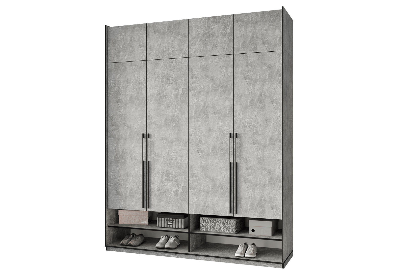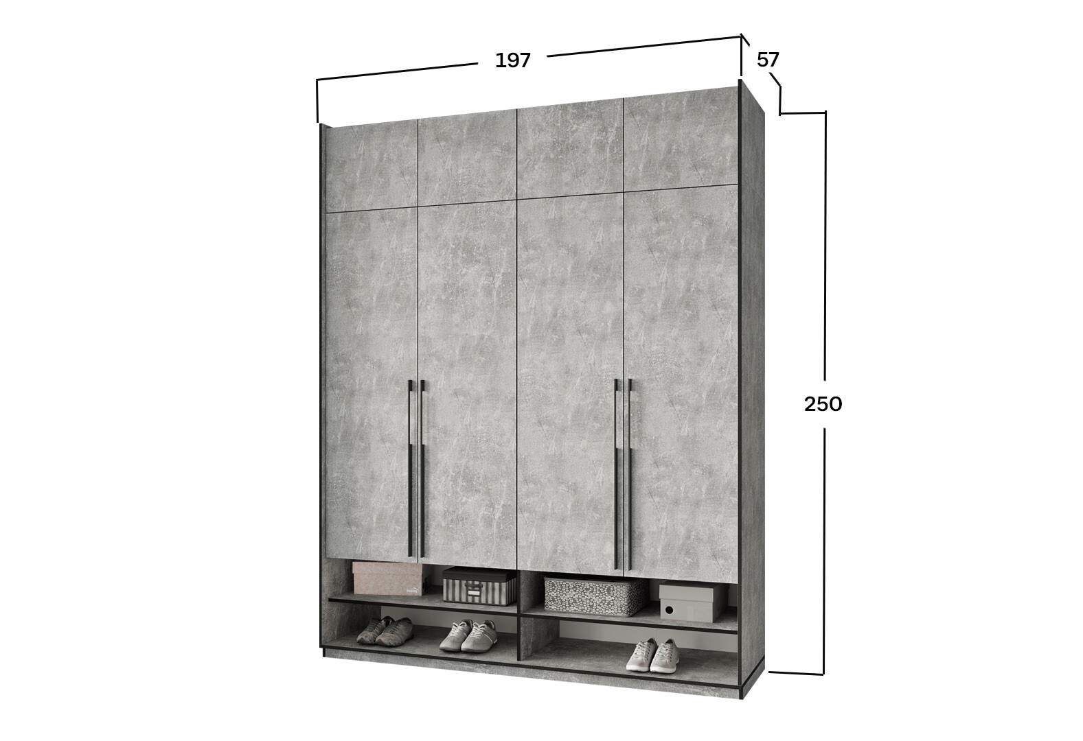 Шкаф Moreli Ramo / Рамо R-0010 4-дверный со штангой справа, полками и антресолью 196,8 см, бетон
