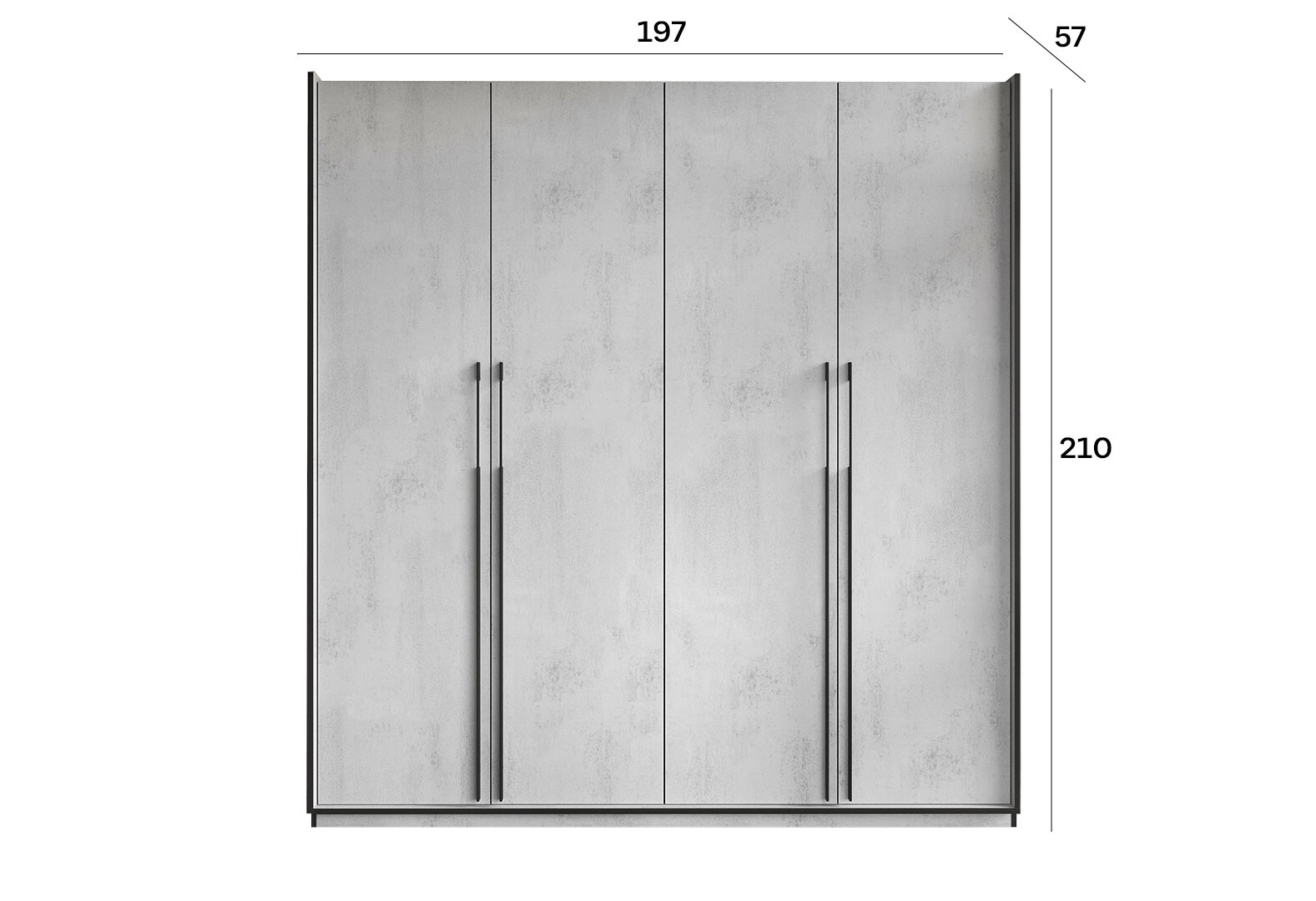 Шкаф Moreli Ramo / Рамо R-0017 4-дверный с полками 196,8 см, бетон тефра