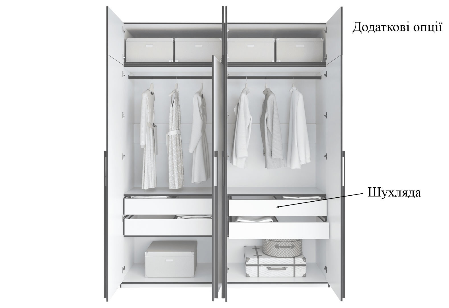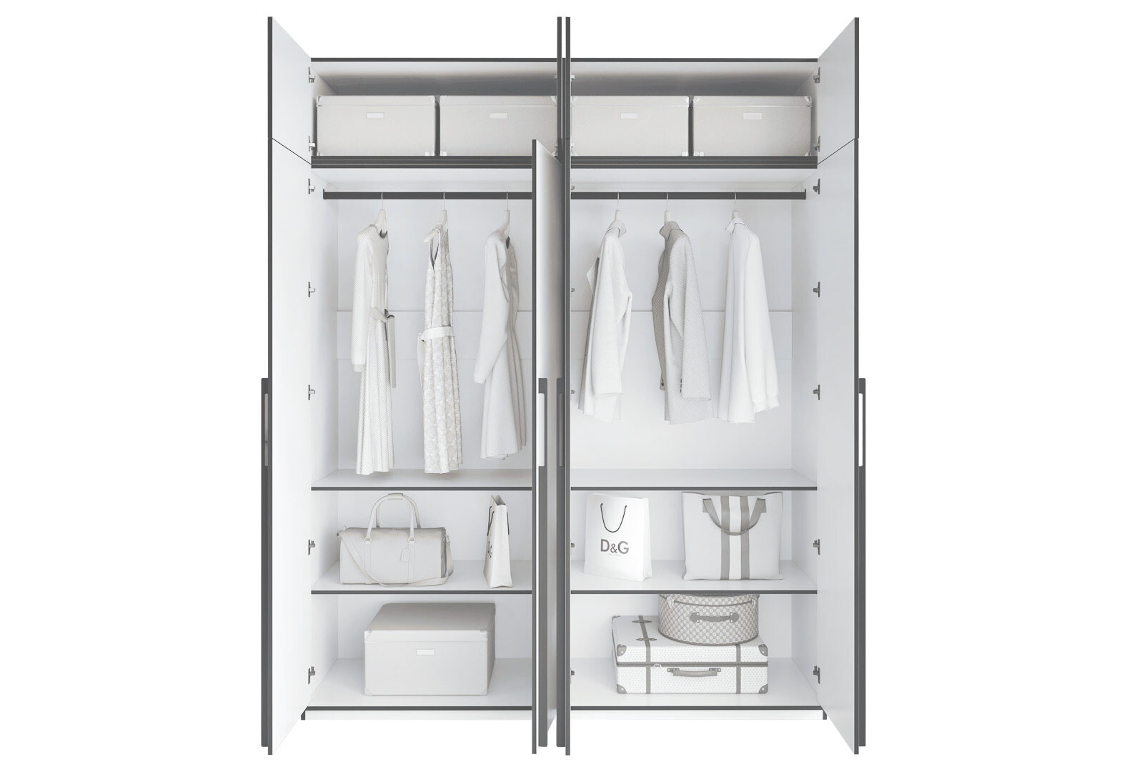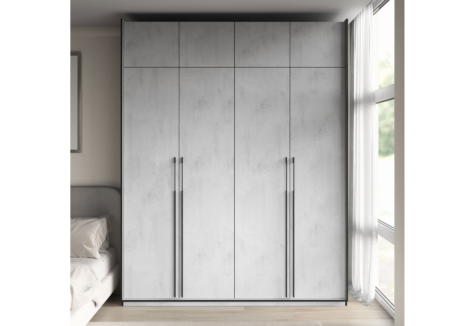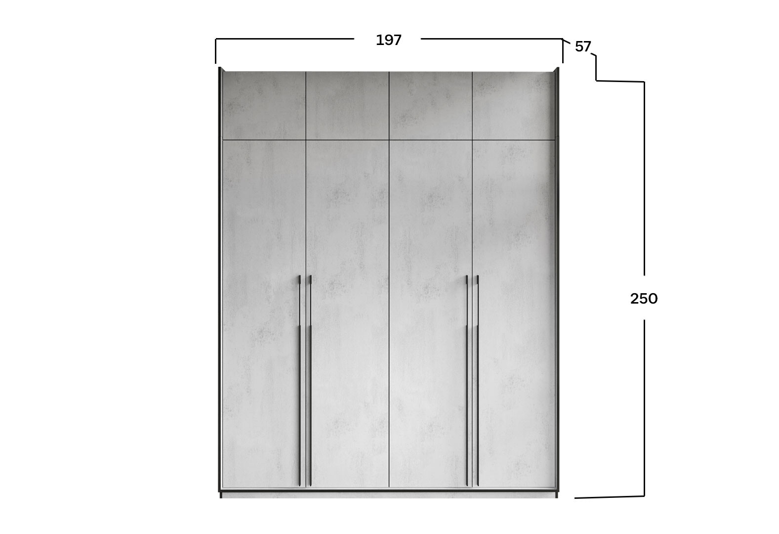 Шкаф Moreli Ramo / Рамо R-0018 4-дверный со штангами, полками и антресолью 196,8 см, бетон тефра