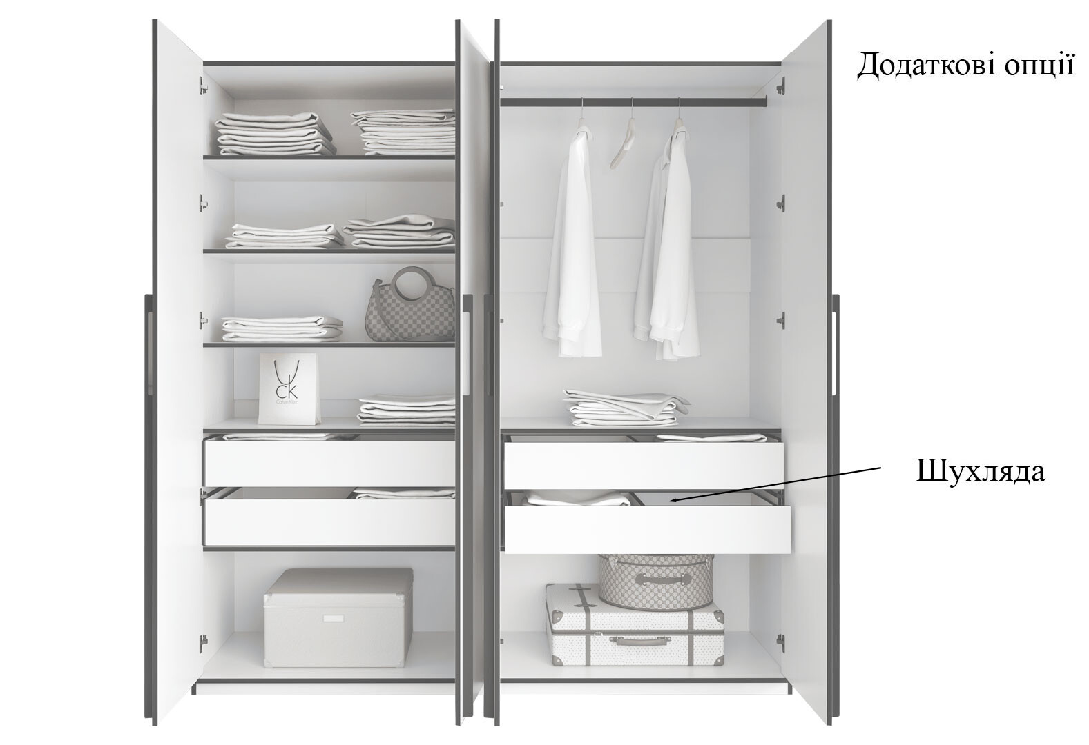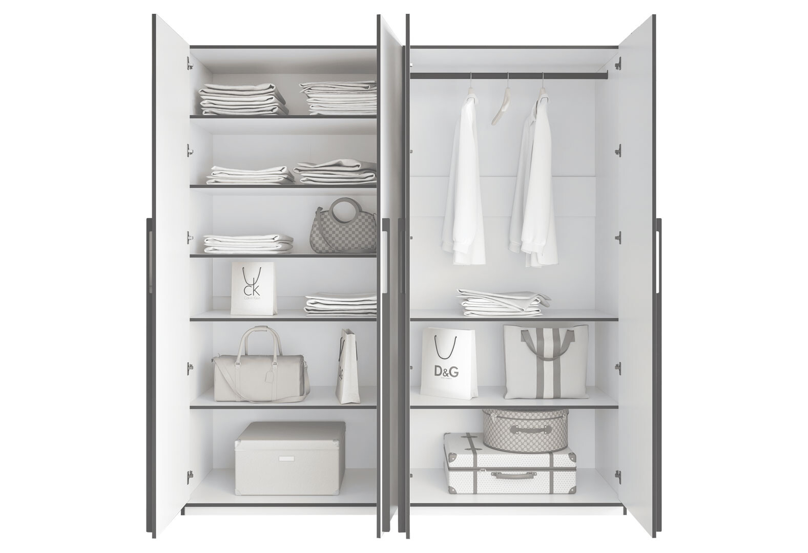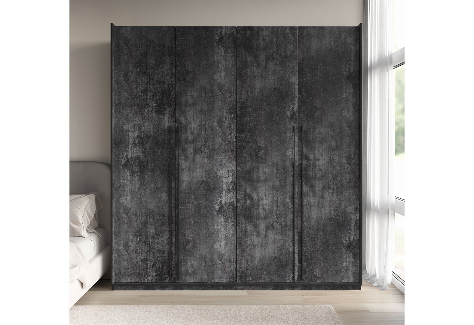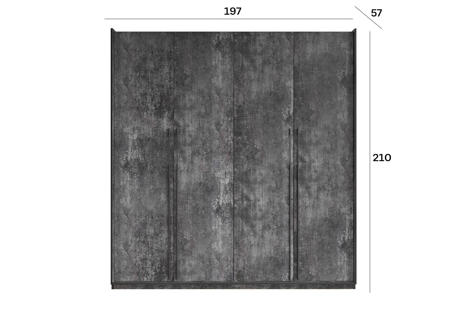Шкаф Moreli Ramo / Рамо R-0020 4-дверный со штангой справа и полками 196,8 см, бетон тёмный