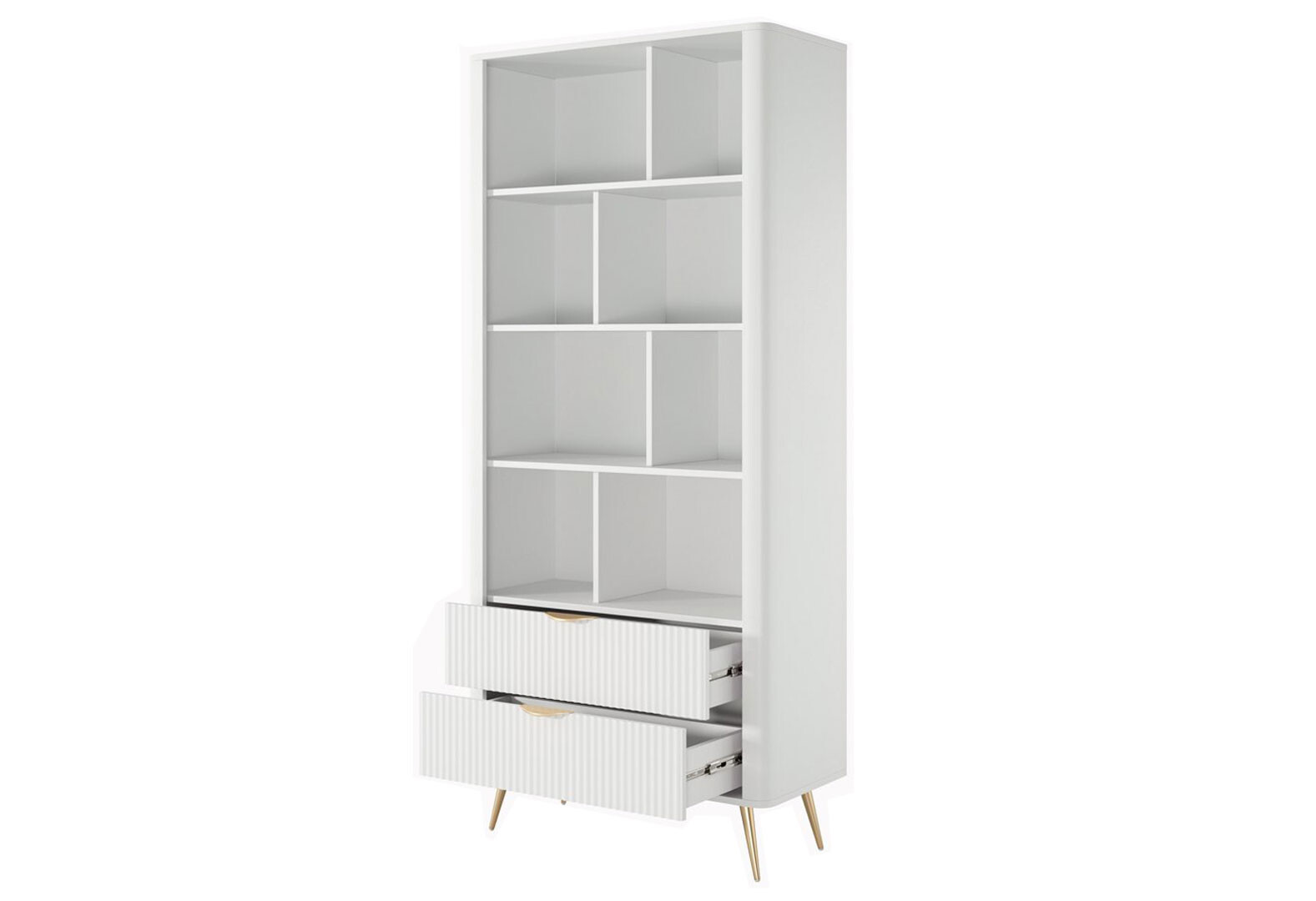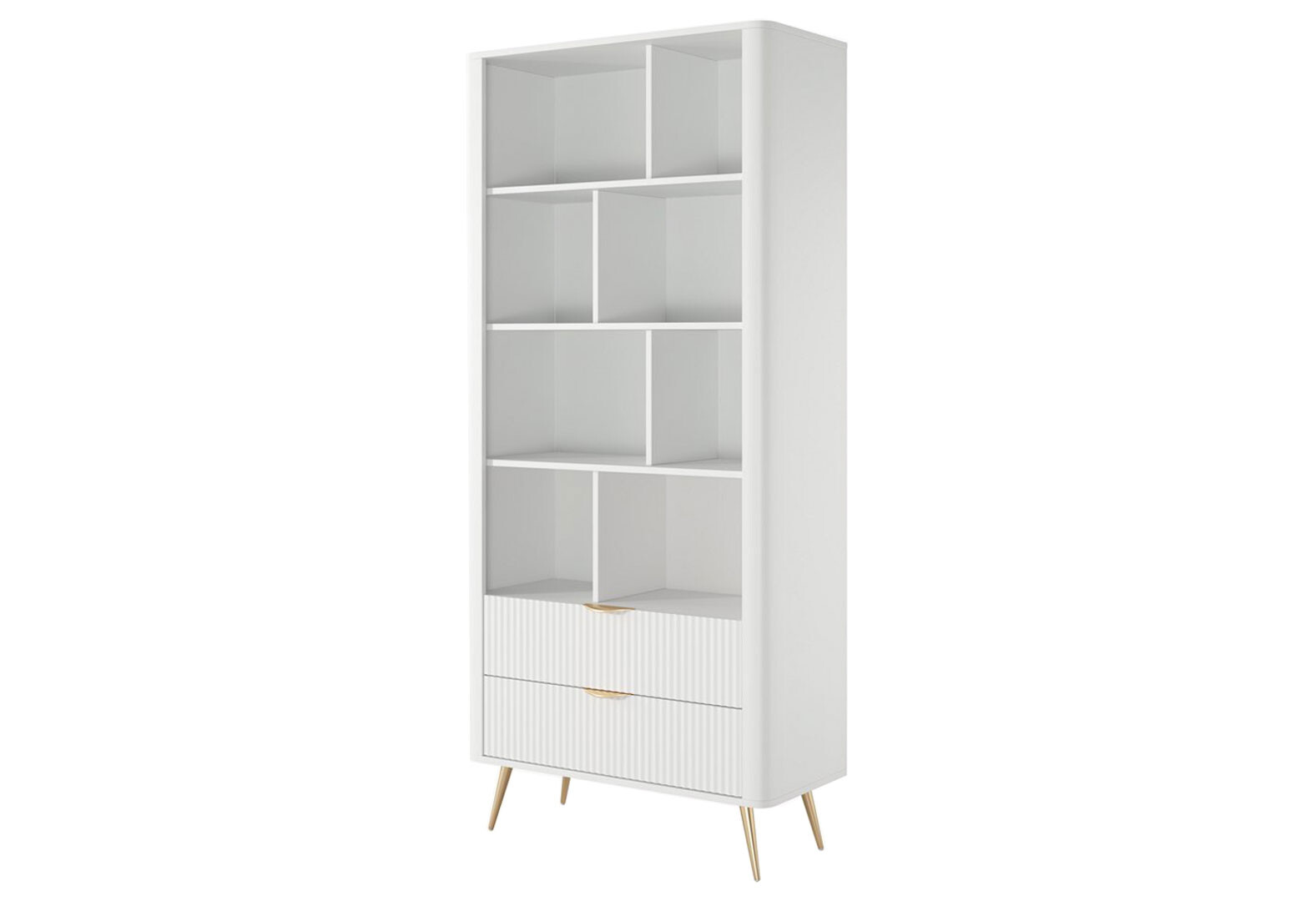 - Шкаф-стеллаж открытый Perfect Home Ланте / Lante с 2 ящиками 88 см, белый, золотые ножки