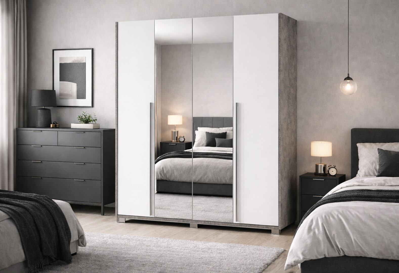 Шкаф Svit Mebliv Алекса 4-дверный с зеркалом 180 см Ателье светлый / Нимфеа альба