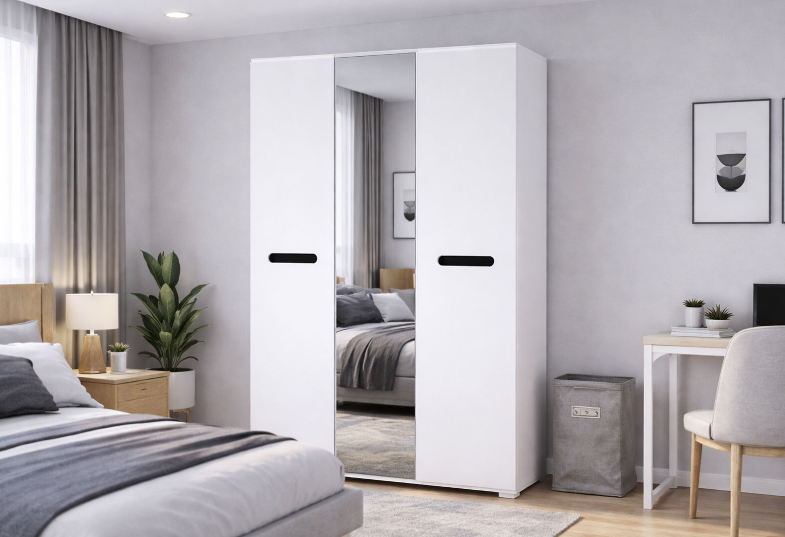 Шкаф Svit Mebliv Бьянко 3-дверный з зеркалом 120 см, Белый с черной вставкой