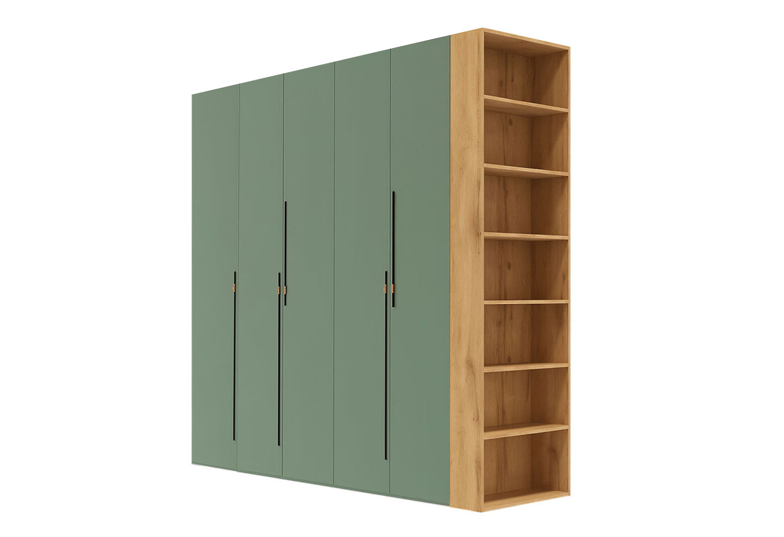 - Шкаф Svit Mebliv Спейс пятидверная с боковыми полками 220х220х57 см, дуб аппалачи / зеленый дымчатый