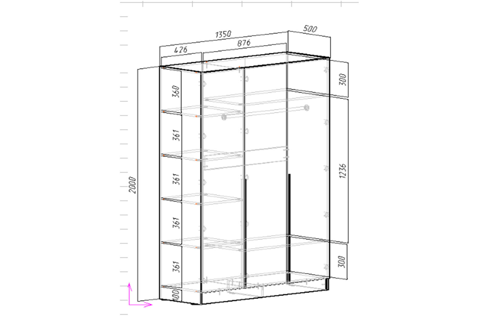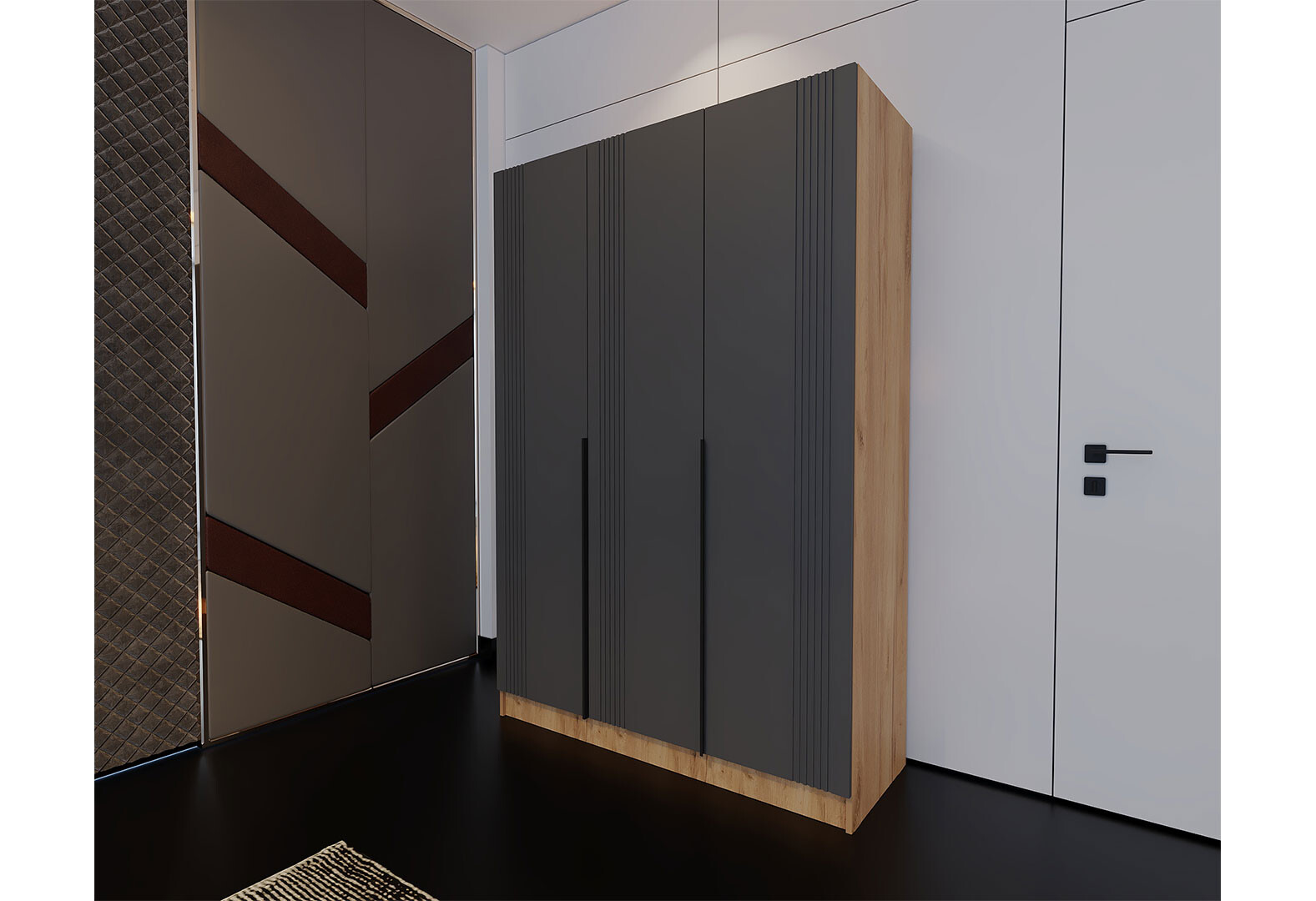 - Шкаф Viant АРС 3-дверный со штангой и полками 135 см, тахо / темно-серый RAL 7012