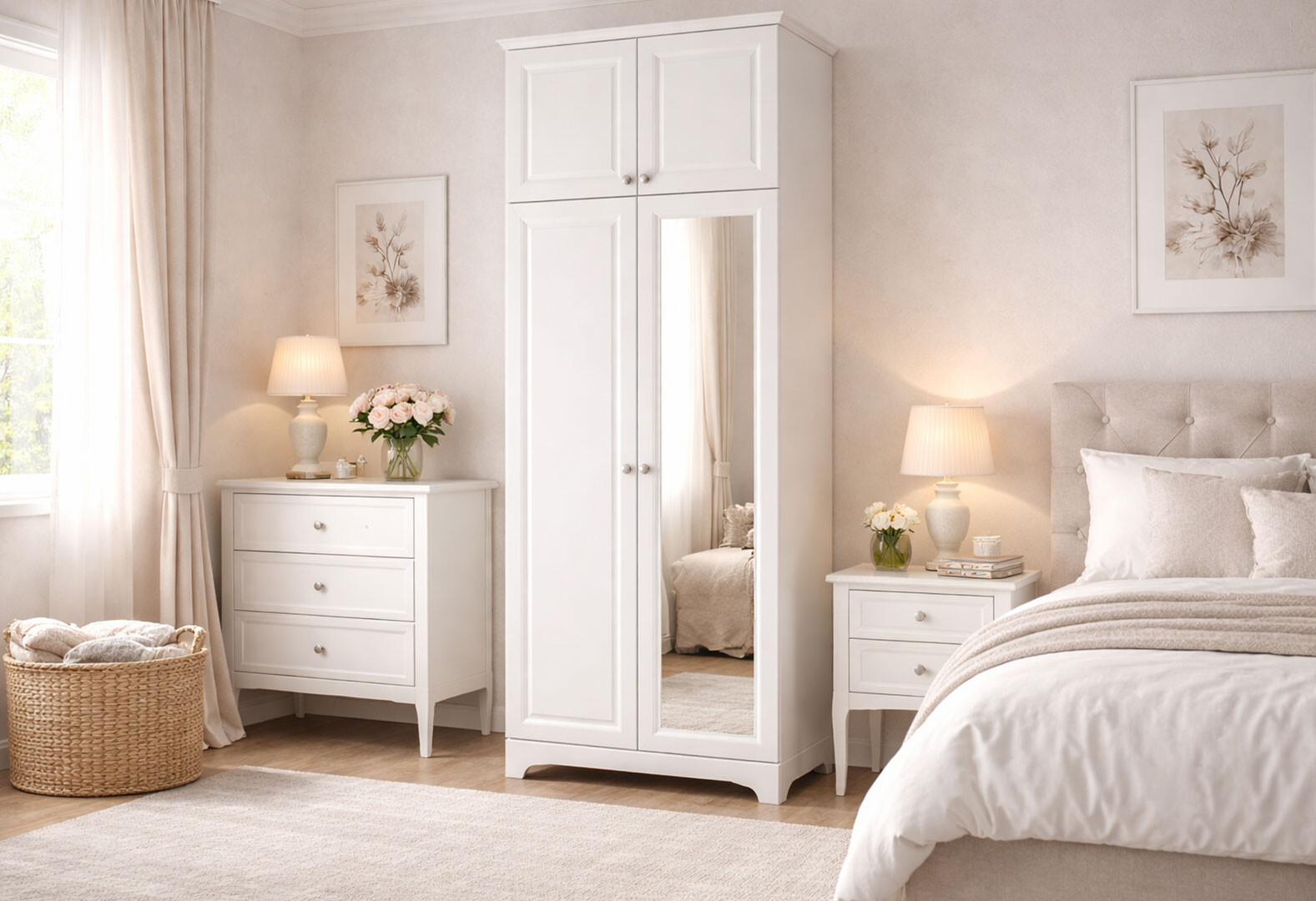Шкаф Вип-Мастер Мадрид МДФ 2-дверный с высокой антресолью и зеркалом V.1 102 см, белый