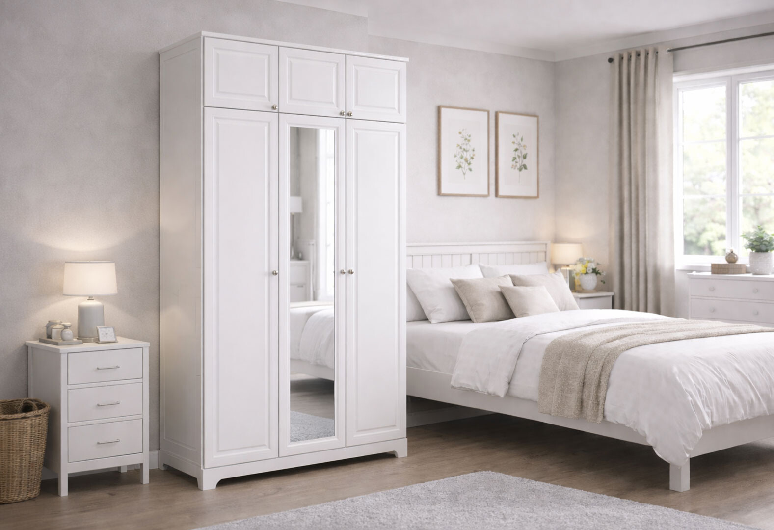 - Шкаф Вип-Мастер Мадрид МДФ 3-дверный с антресолью и зеркалом V.1 152 см, белый