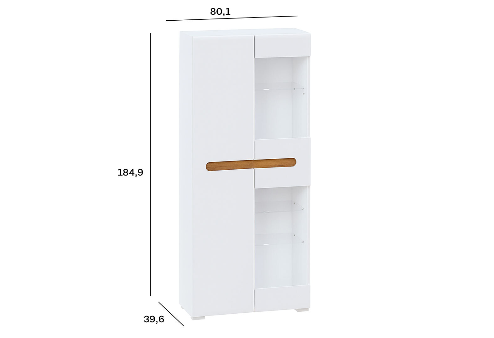 - Шкаф-витрина Svit Mebliv Бьянко 80 см Белый с вставкой дуб аппалачи
