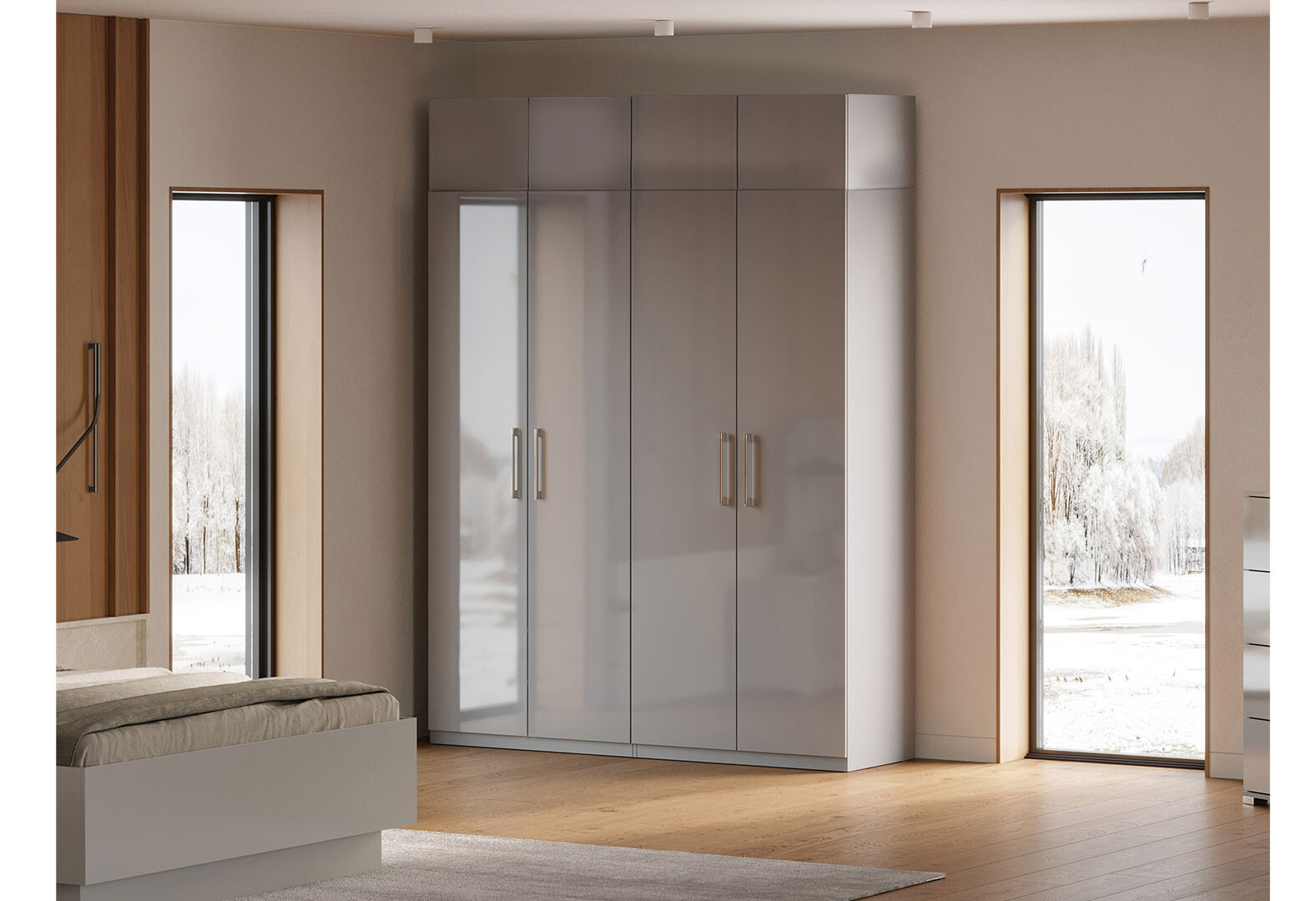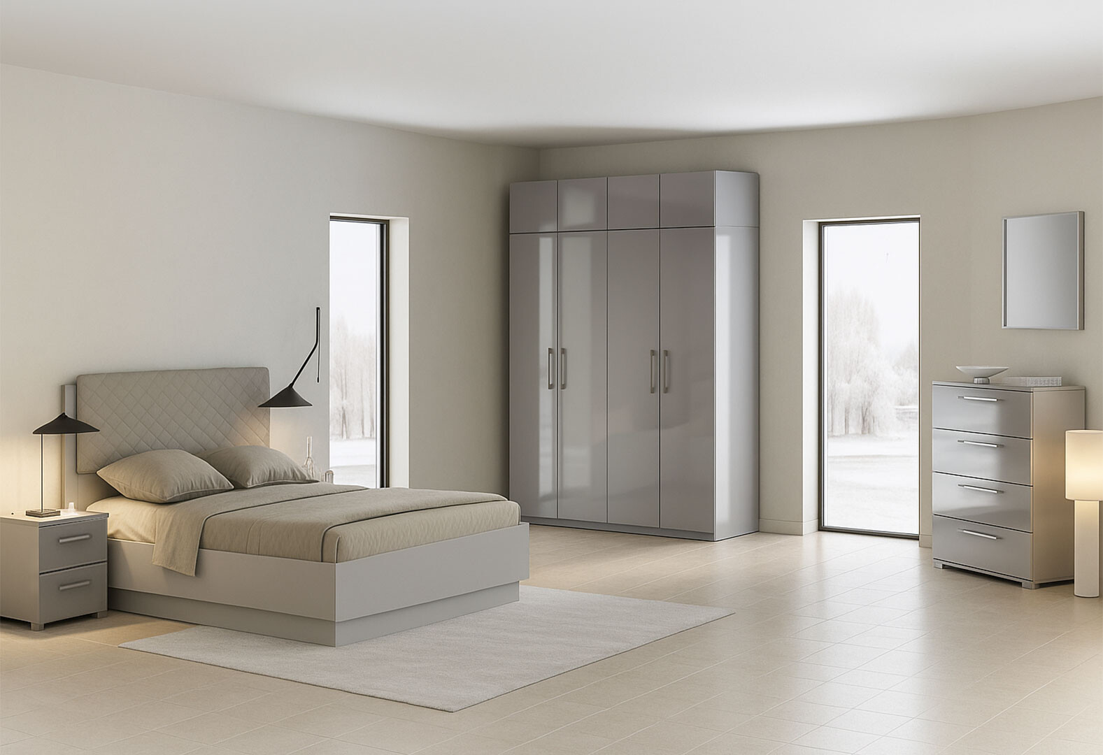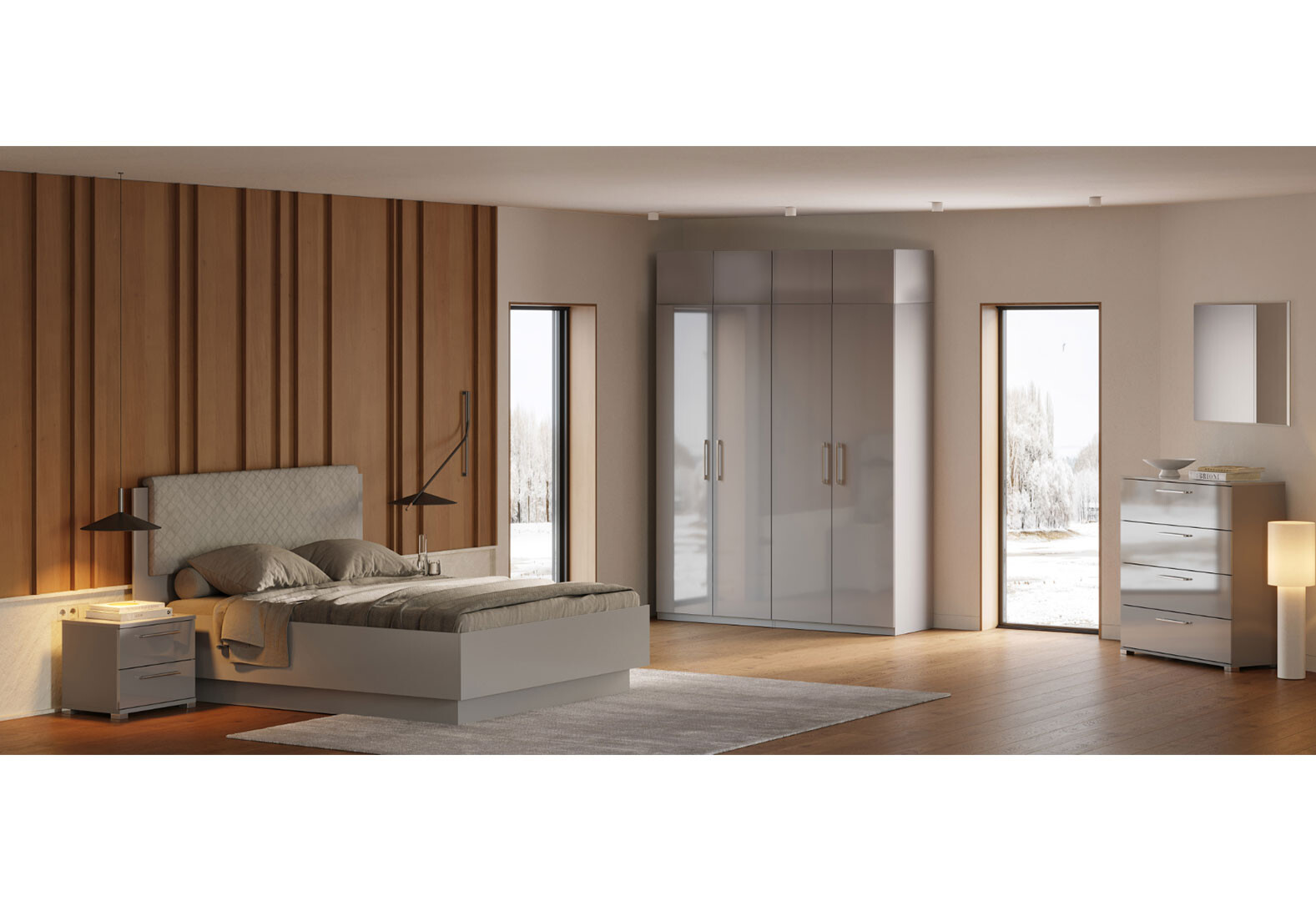 Спальня МироМарк Меги / Megy 4D с антресолями 160 см, глянец серый шиншилла