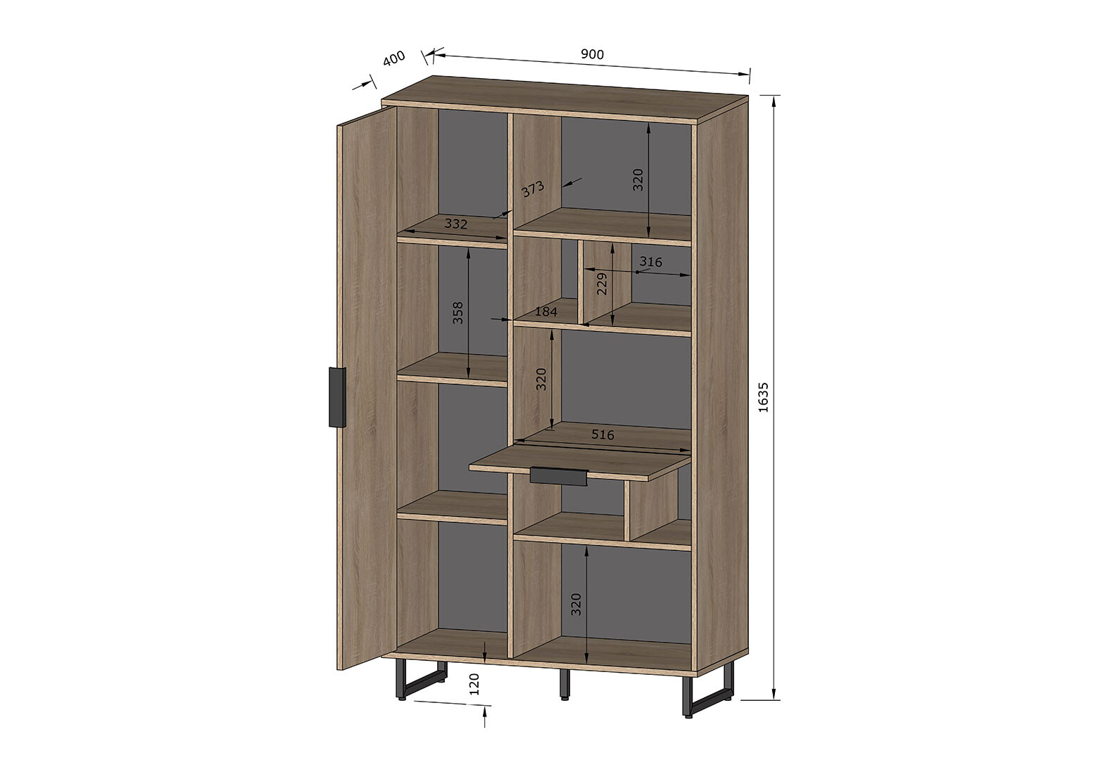 - Стеллаж комби Moreli F-0006 Forte / Форте, 90 см бетон тёмный