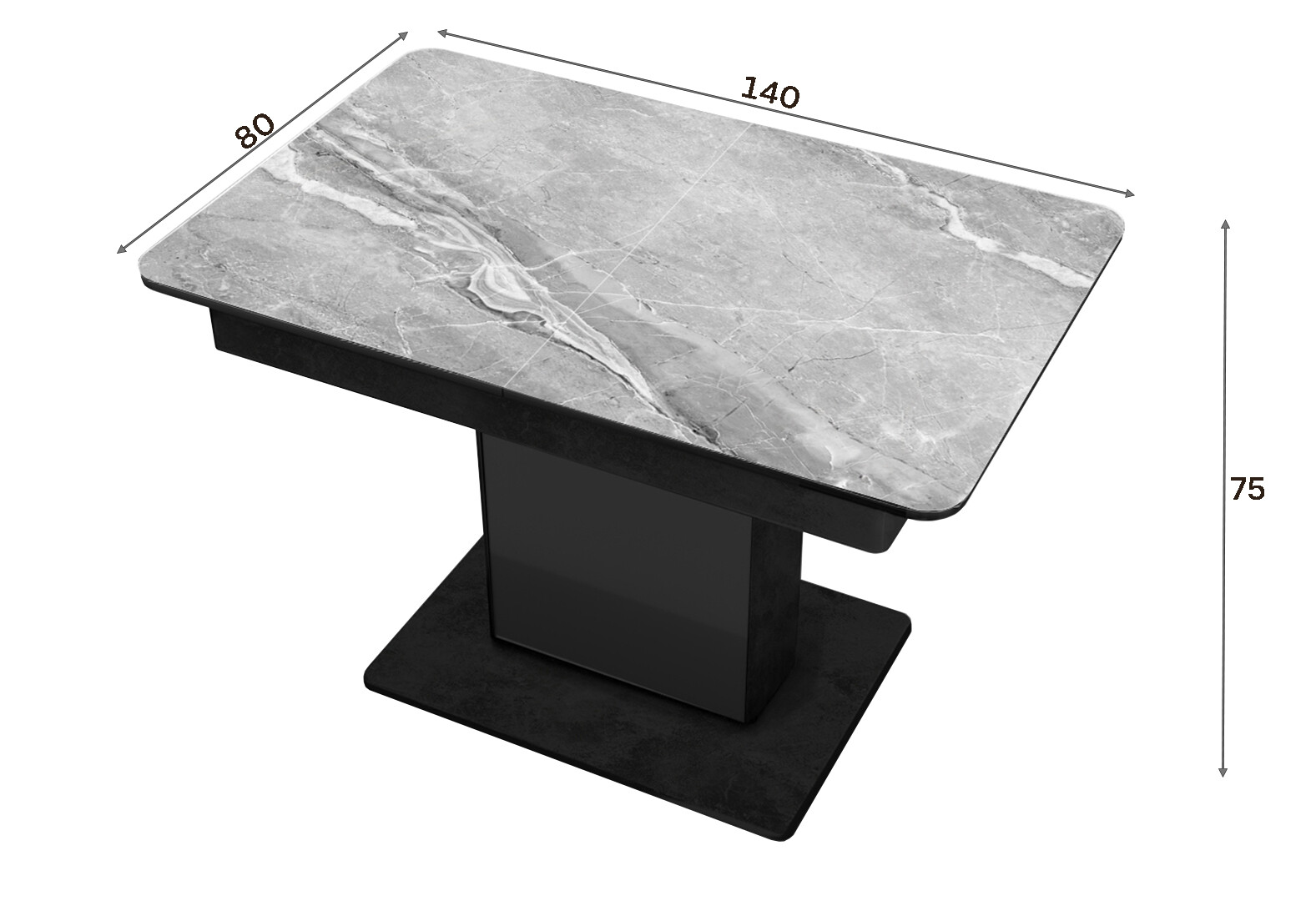 Стол кухонный Jam Бостон Т раскладной 140 / 180 см, бетон черный / стекло бриллиант 78 М